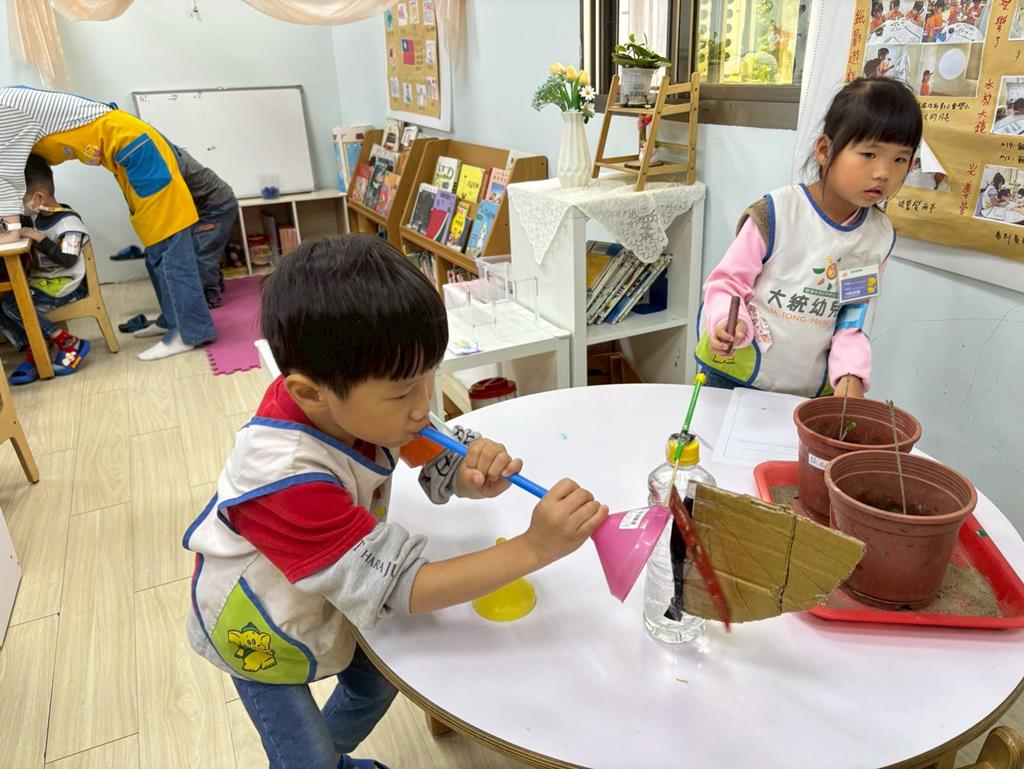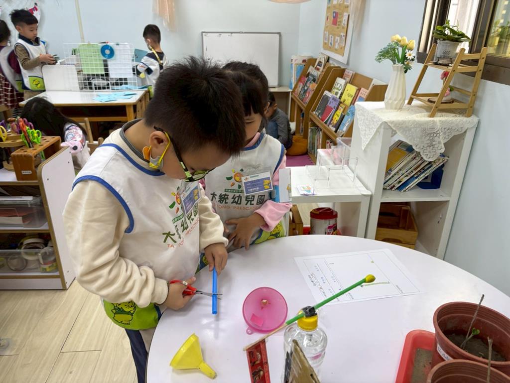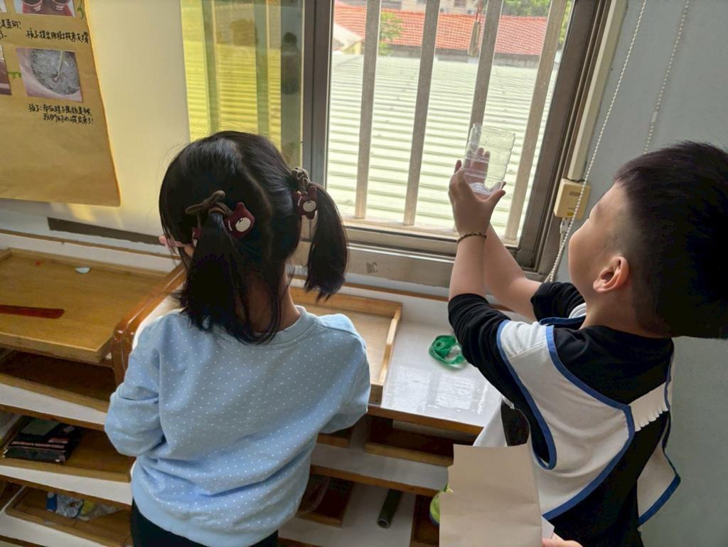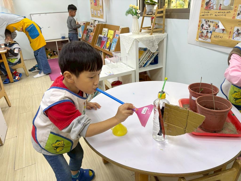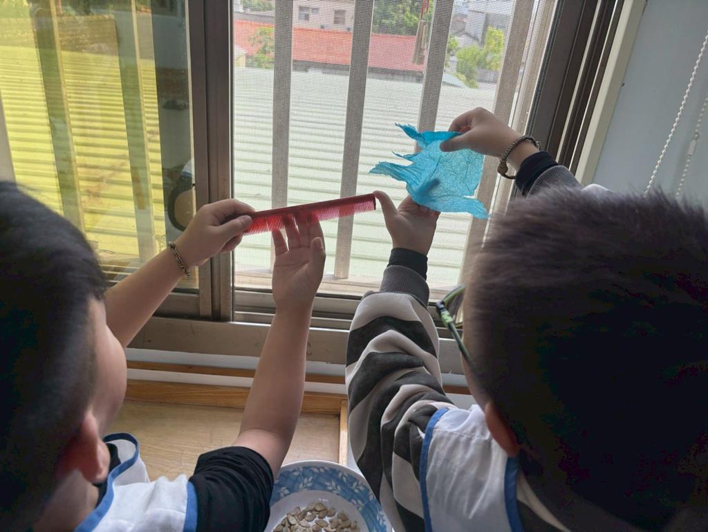 相簿名稱: 科學實驗-探究風速&觀察樹葉顏色及光影&探究教室內有什麼是能透光的物品&三角鏡也能產生光