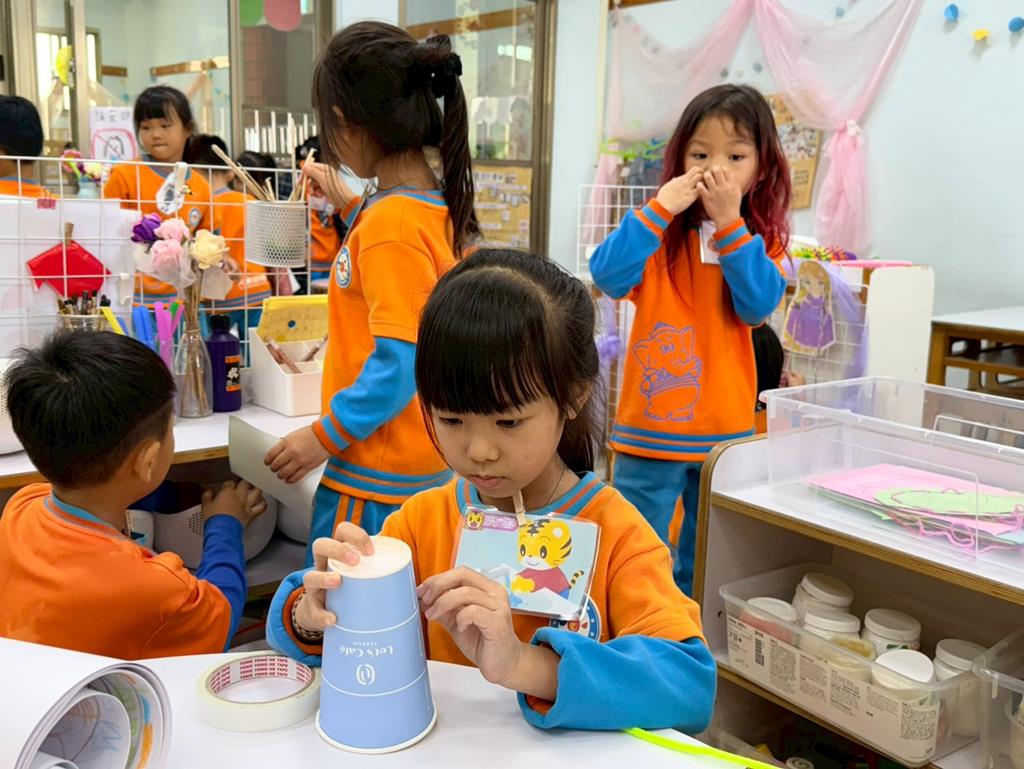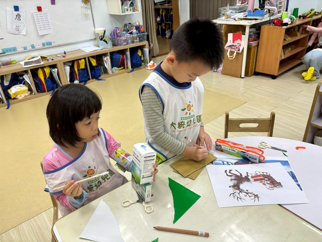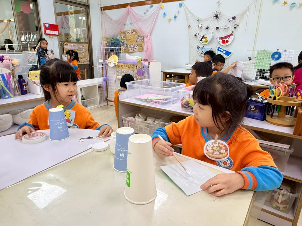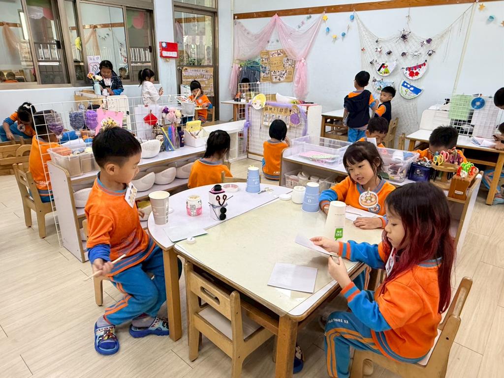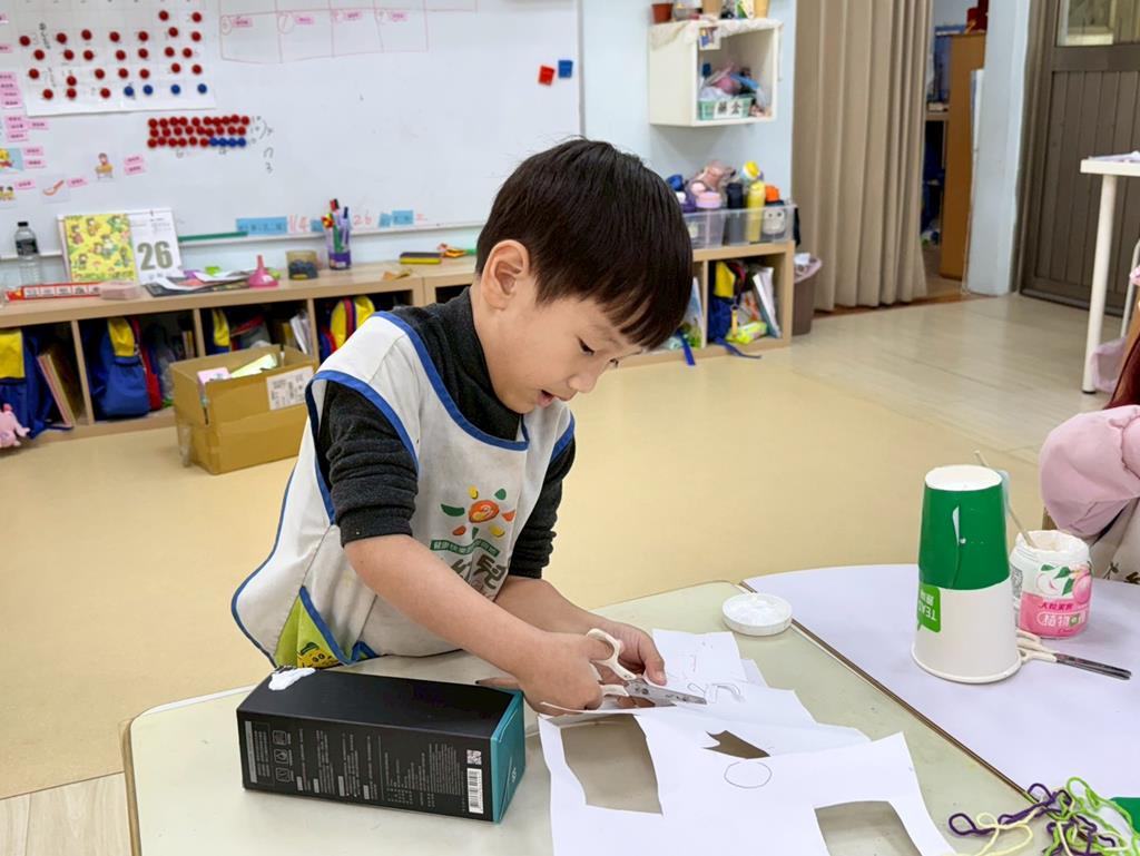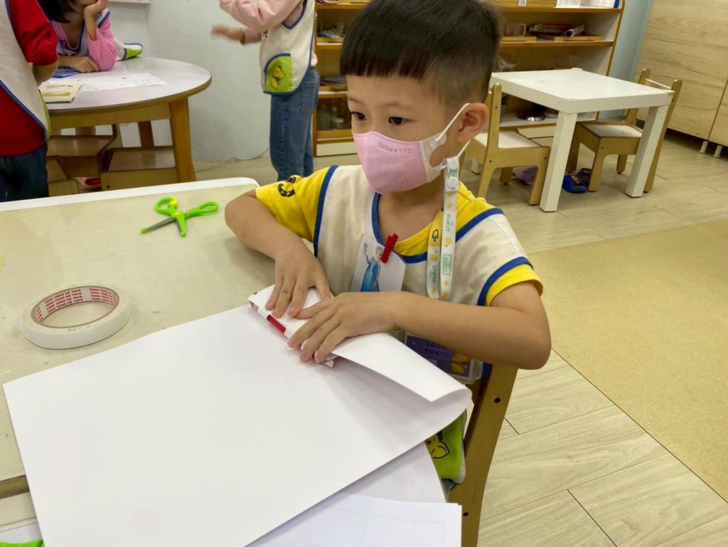 相簿名稱: 美勞區-用毛線編織辮子&製作提袋、聖誕節的雪人和聖誕樹&用各種不同樹葉剪貼佈置花桌