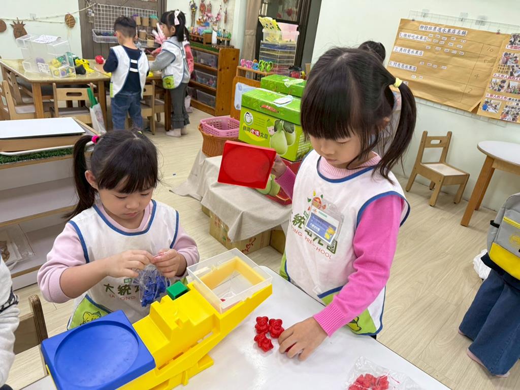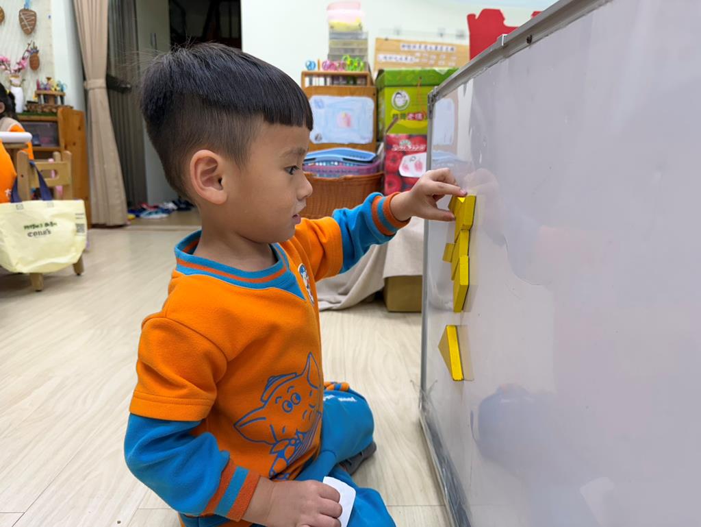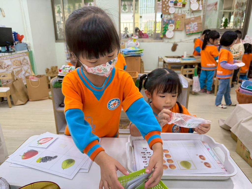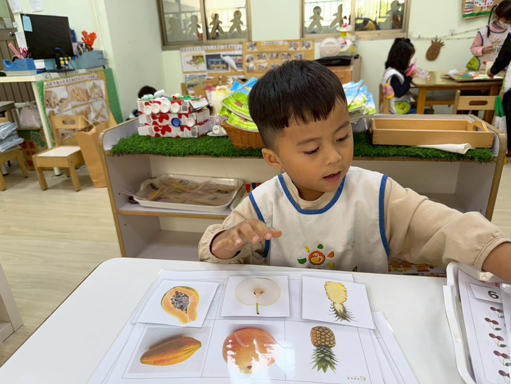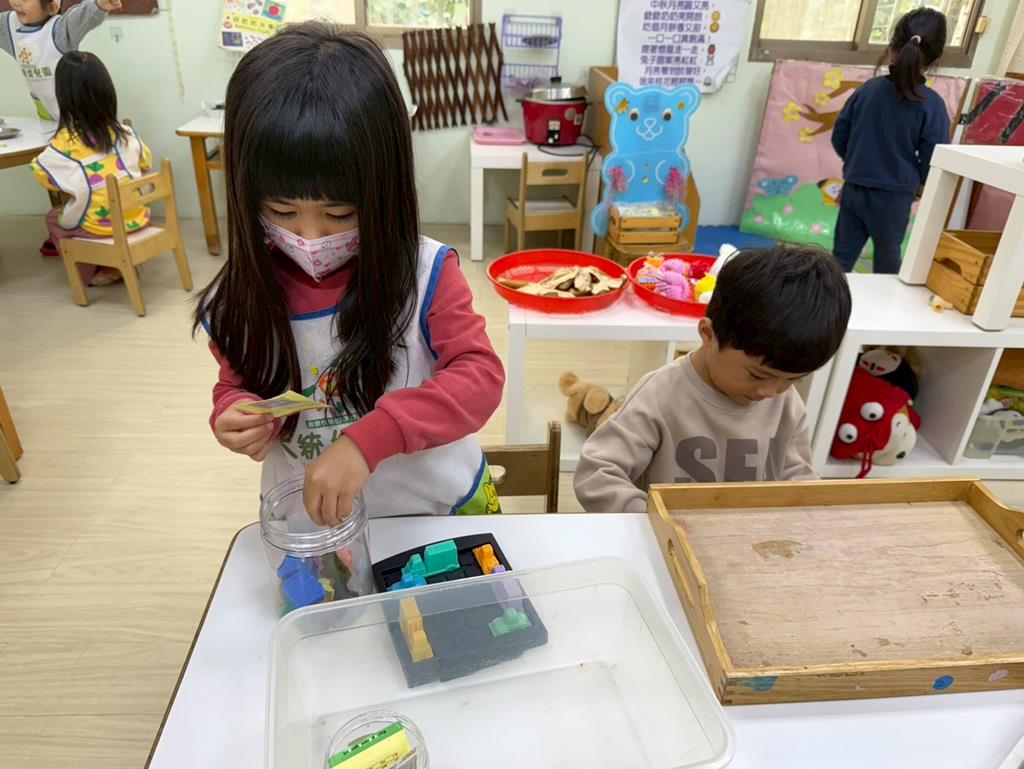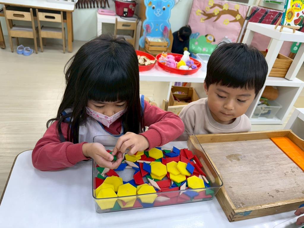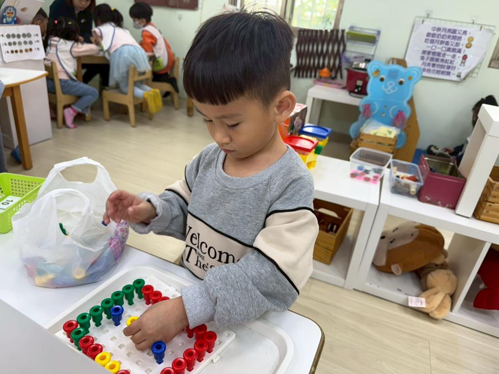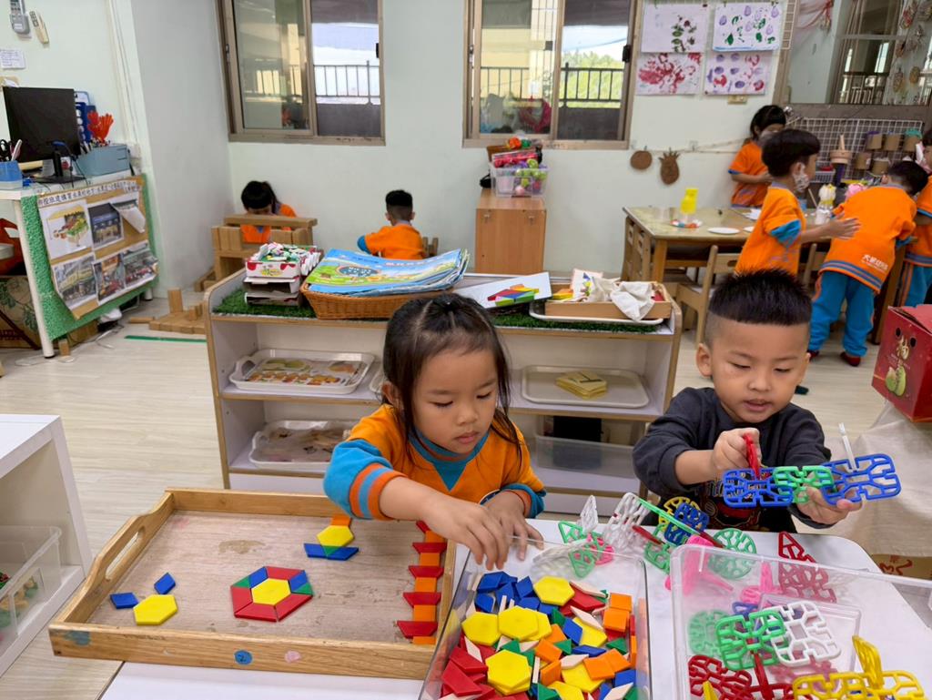 相簿名稱: 組合建構區-組合教具拼飛機及機器人;數學區-平衡小熊、水果剖面圖配對