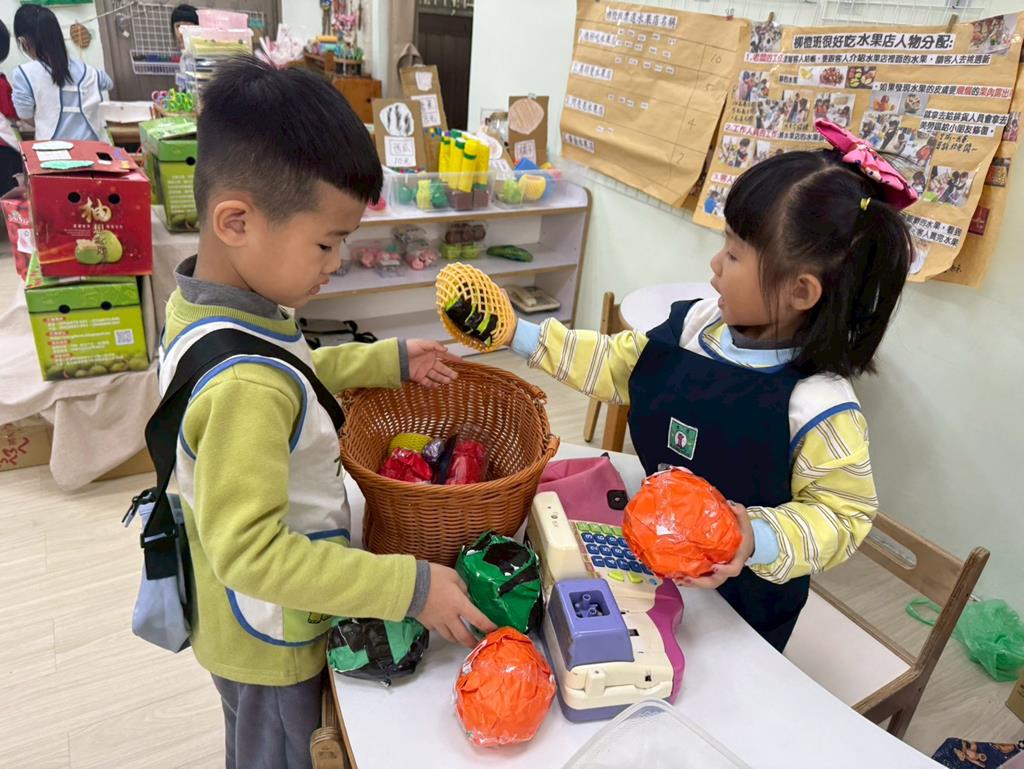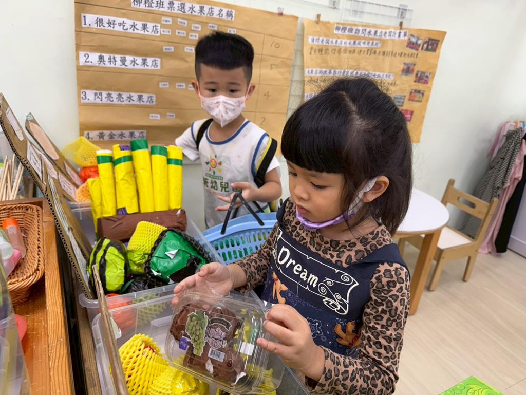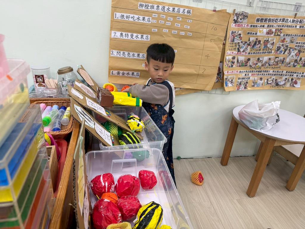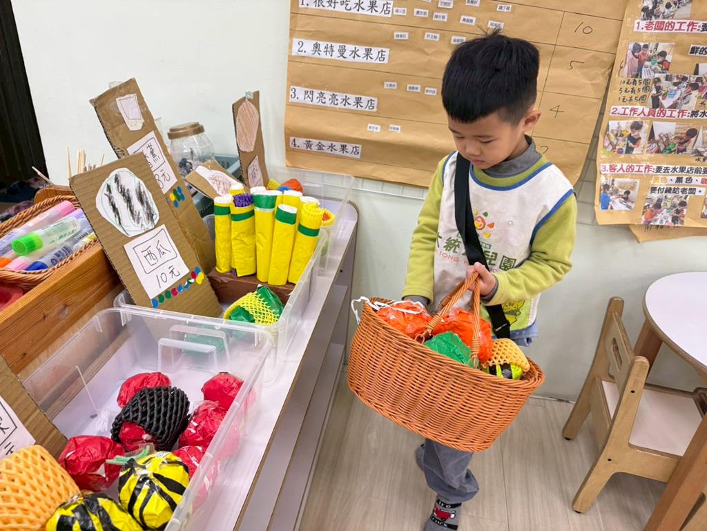 相簿名稱: 語文區-我會說故事給好朋友聽;扮演區-很好吃水果店,請客人快來買水果