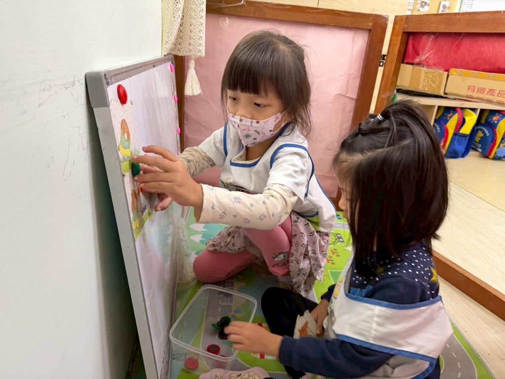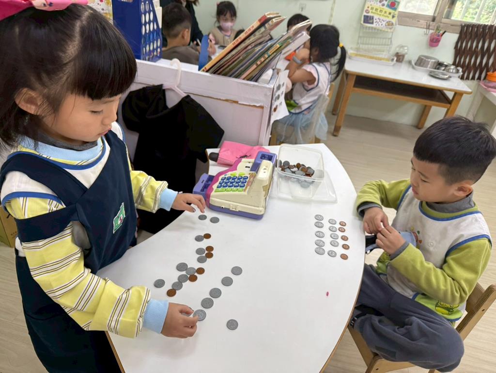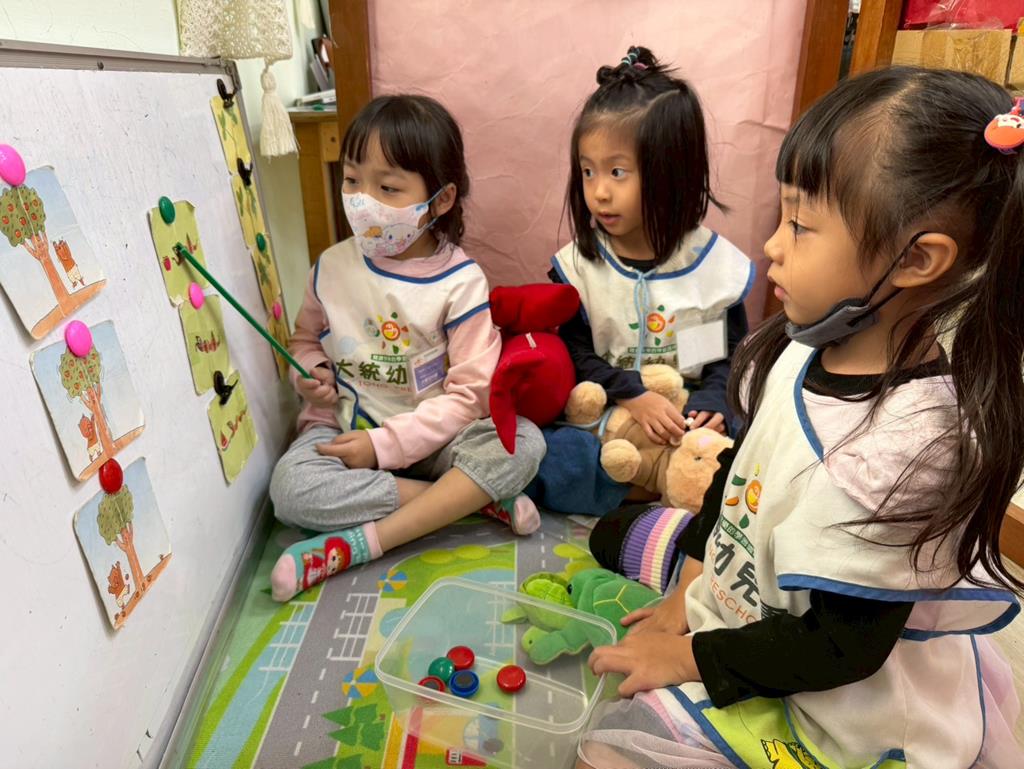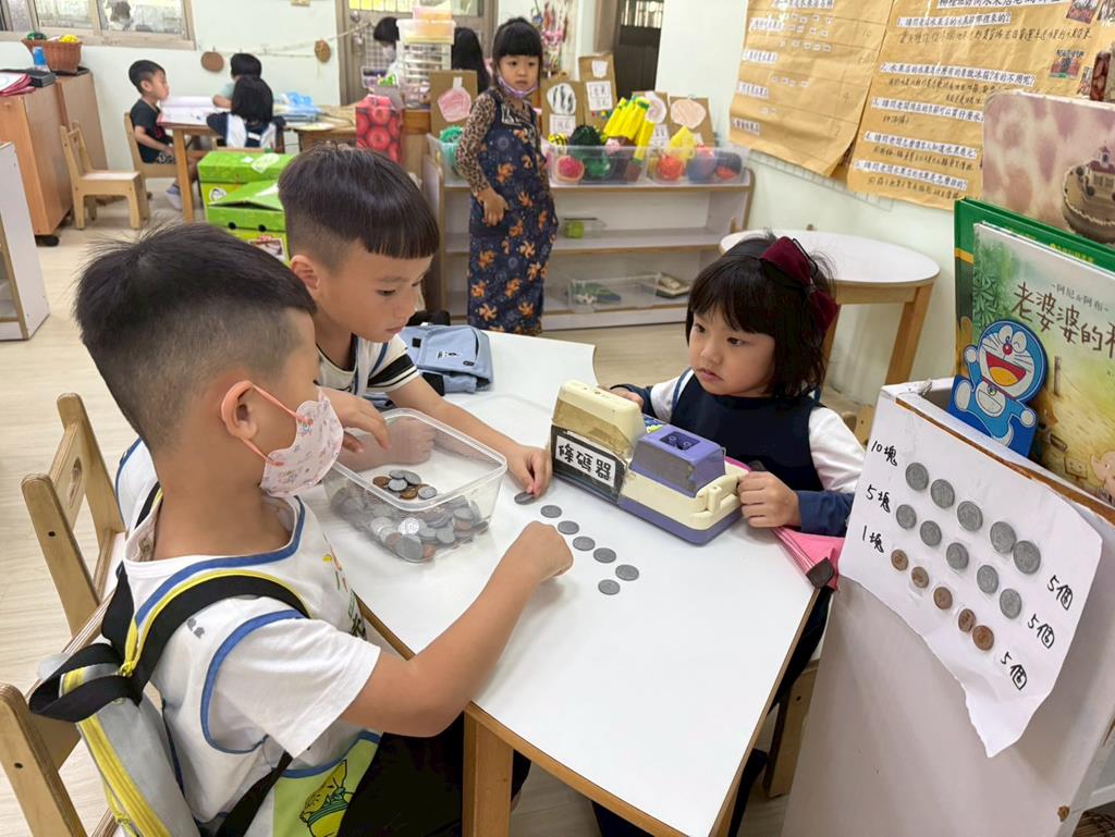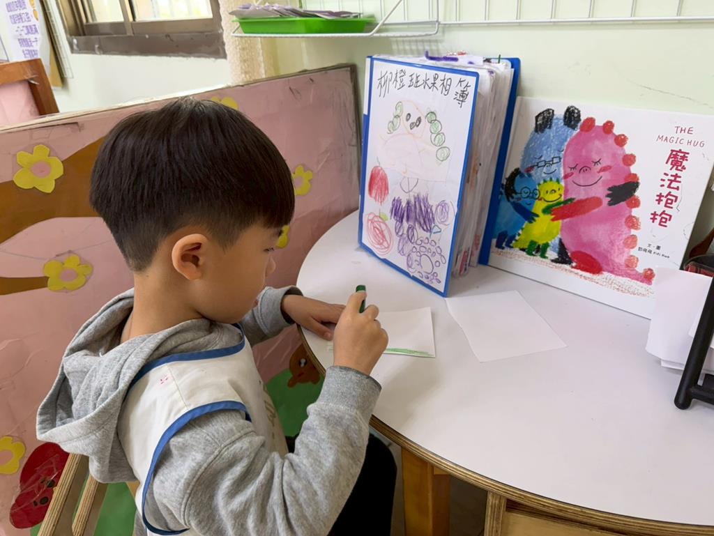 相簿名稱: 語文區-我會說故事給好朋友聽;扮演區-很好吃水果店,請客人快來買水果