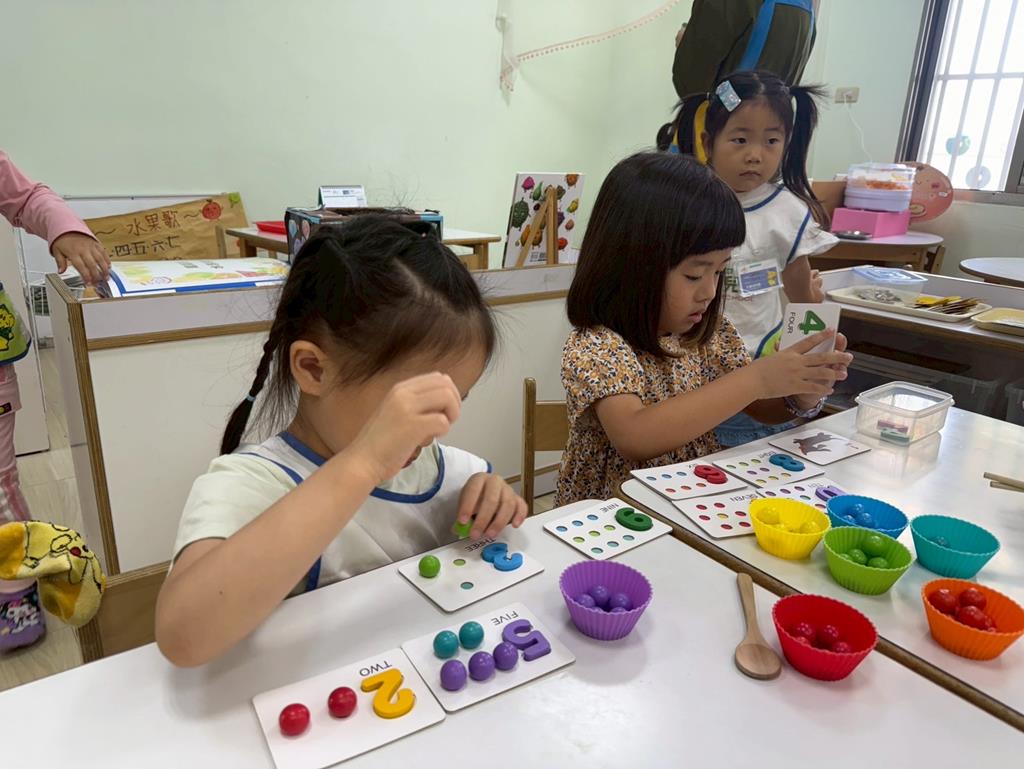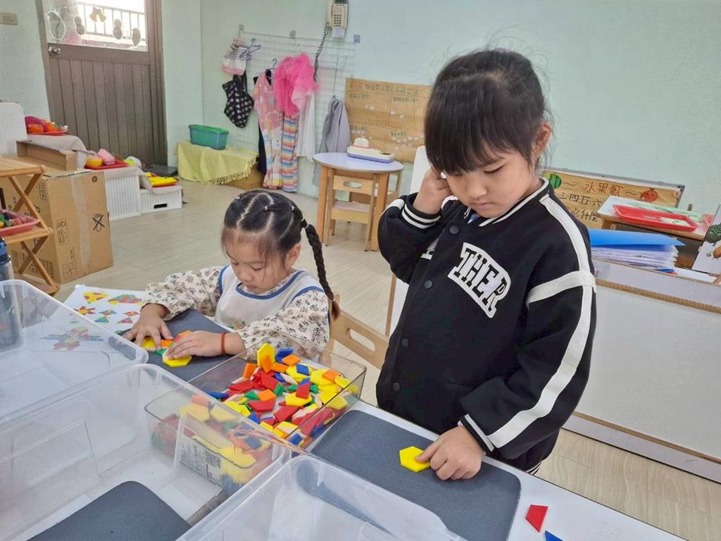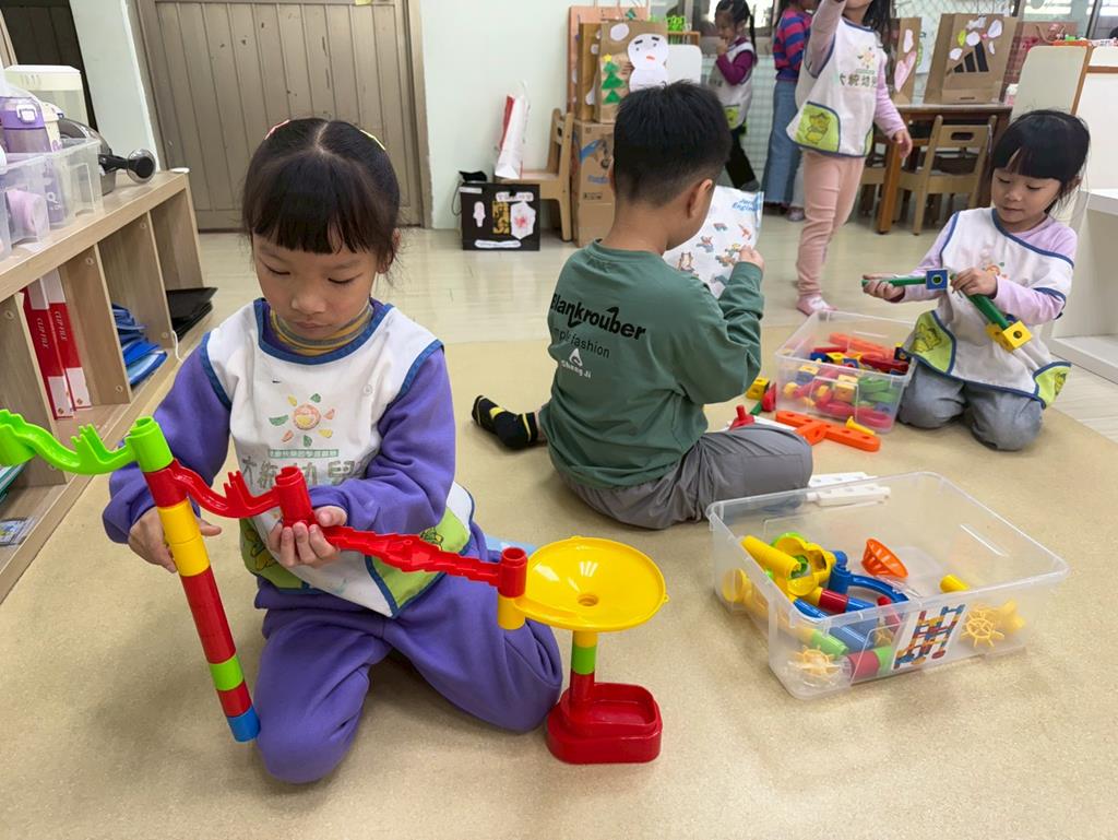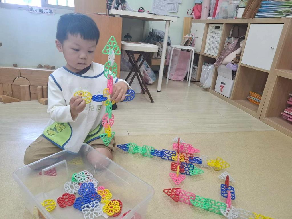 相簿名稱: 組合建構區-小積木與雪花片組裝;數學區-數數遊戲.認識顏色數字