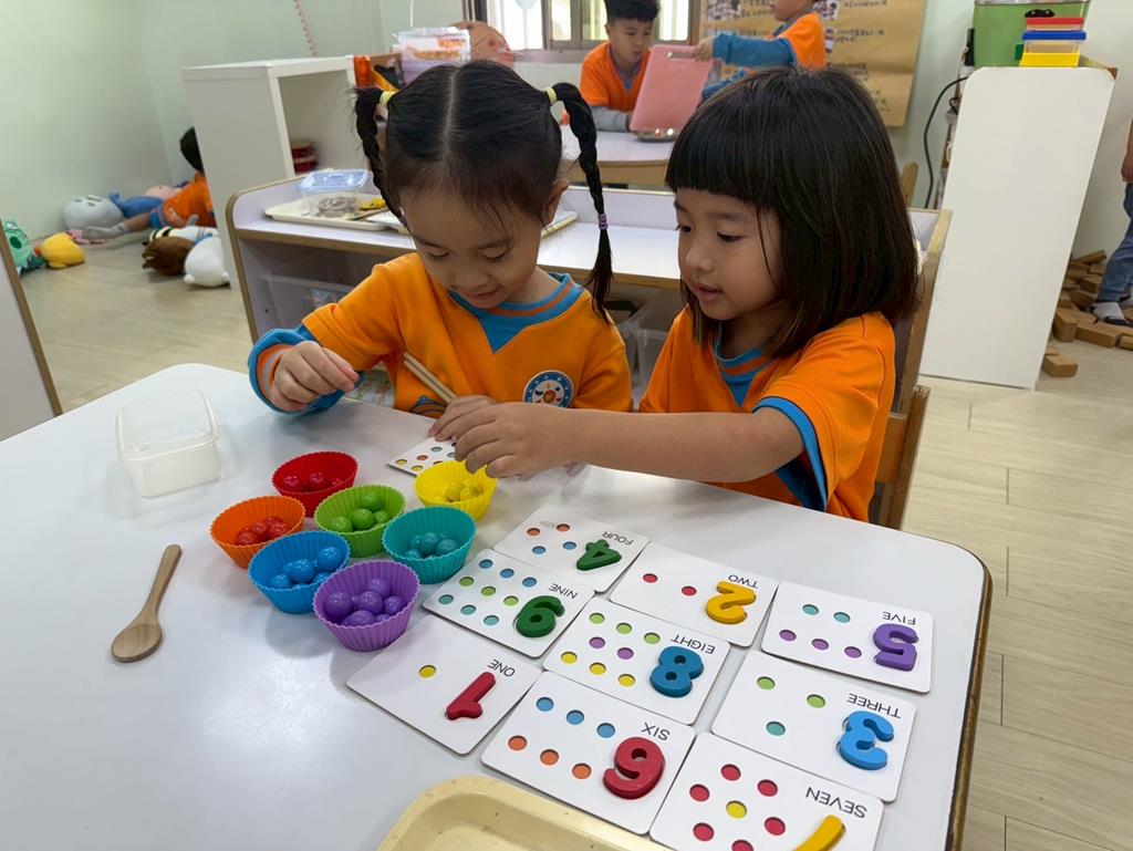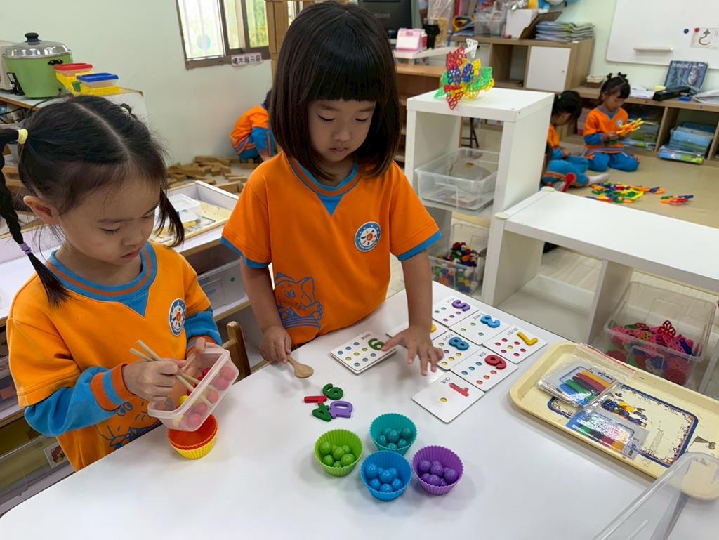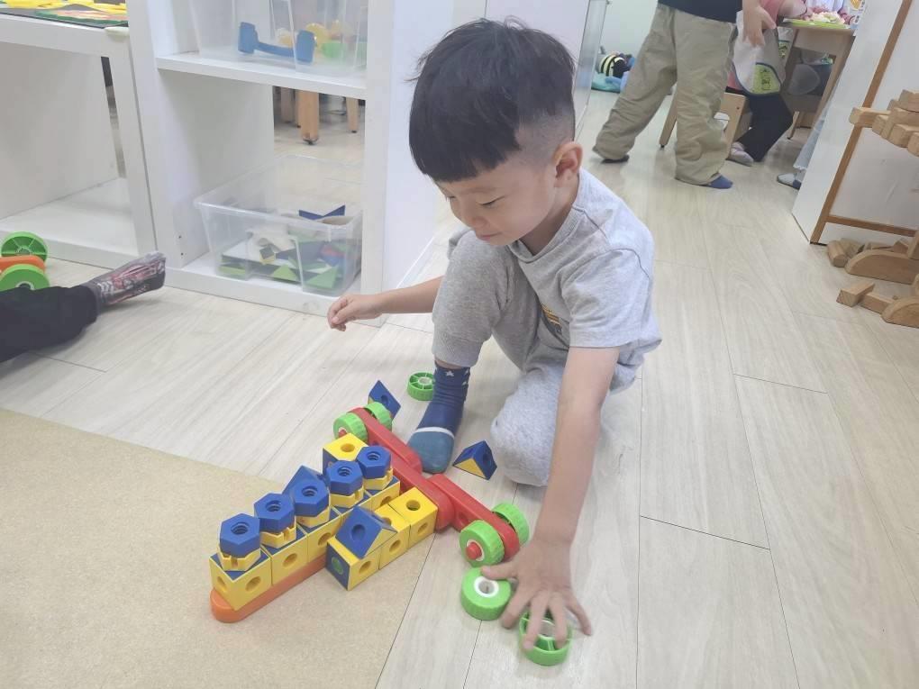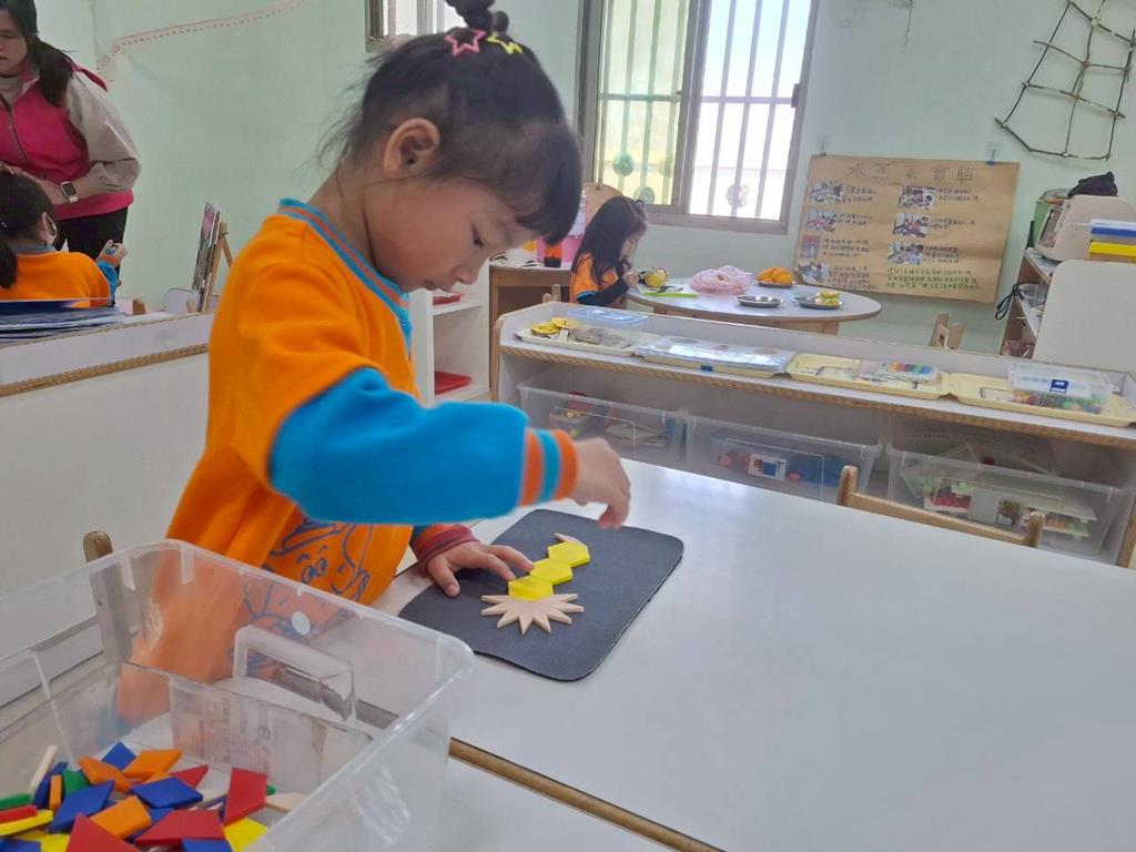 相簿名稱: 組合建構區-小積木與雪花片組裝;數學區-數數遊戲.認識顏色數字