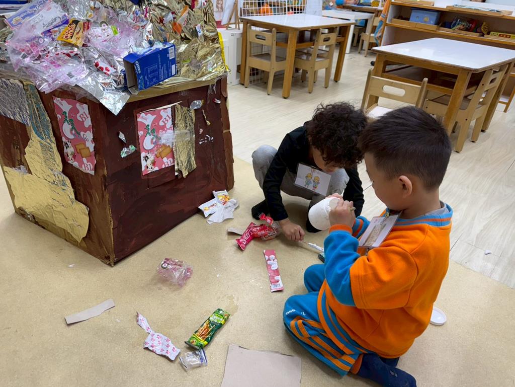 相簿名稱: 美勞-製作薑餅屋房子以及創作聖誕袋子