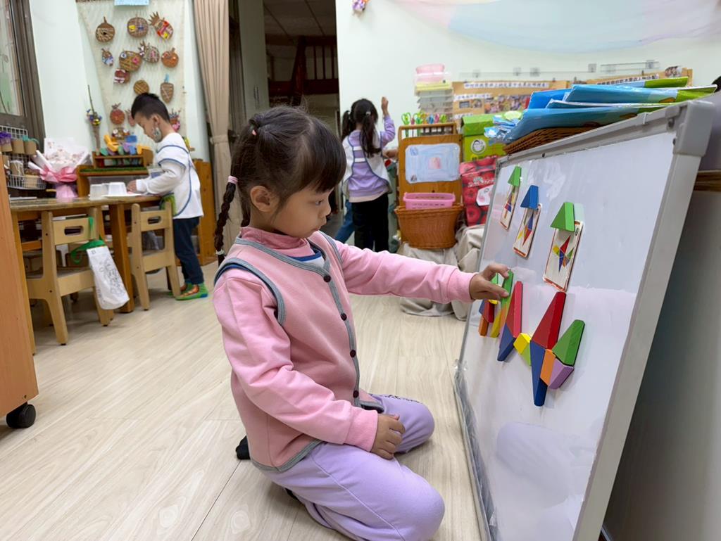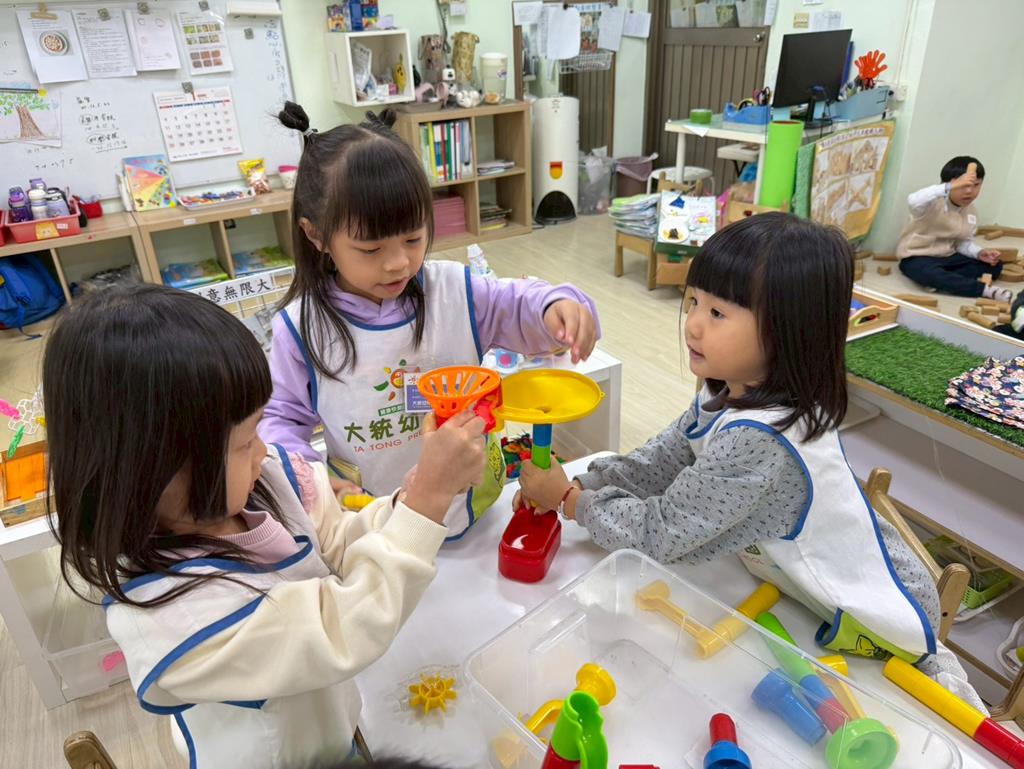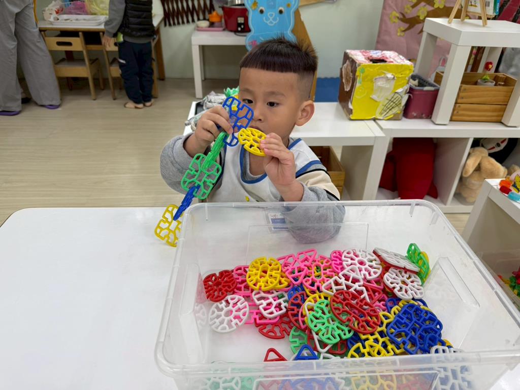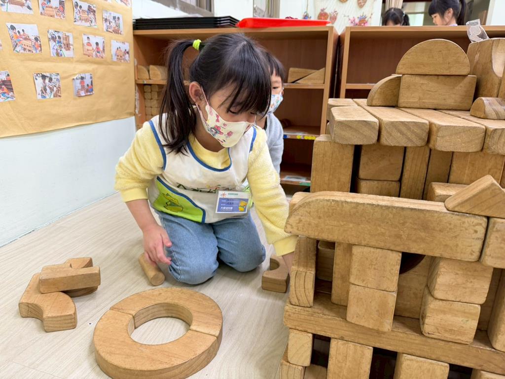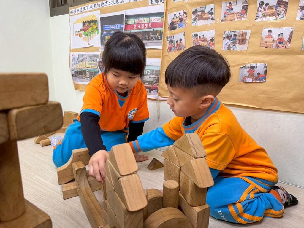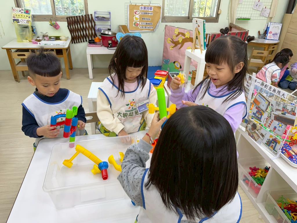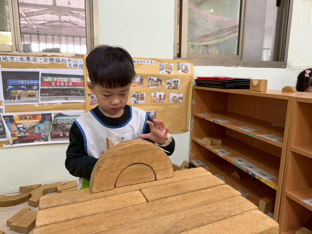 相簿名稱: 組合建構區-運用水管製作彈珠軌道;積木區-建構水果店與鄰居