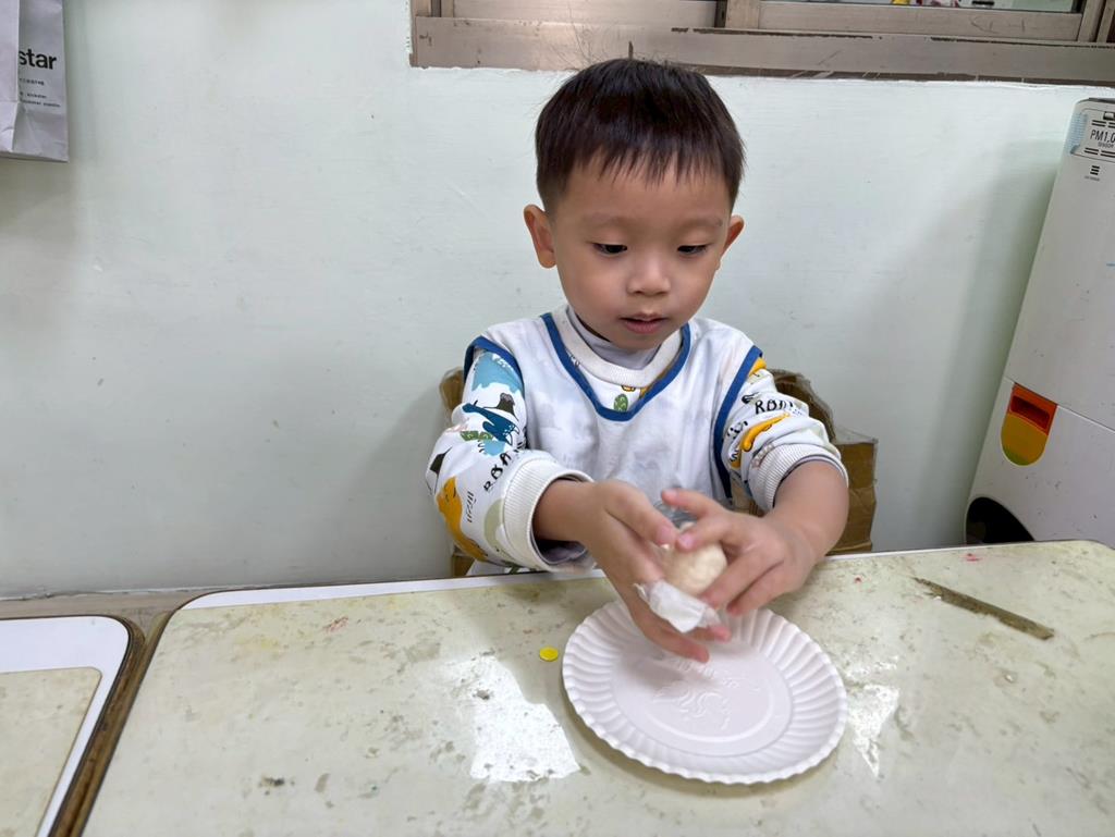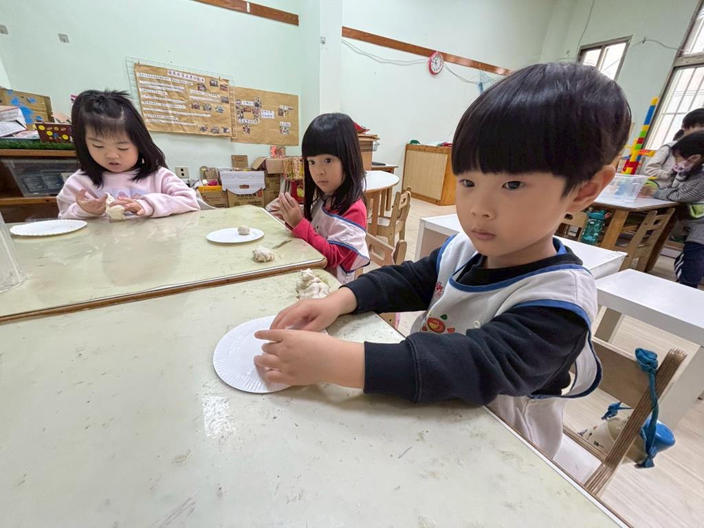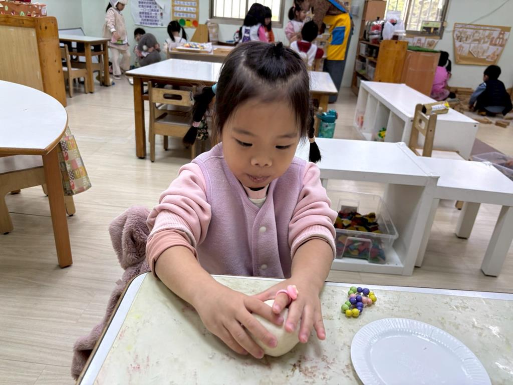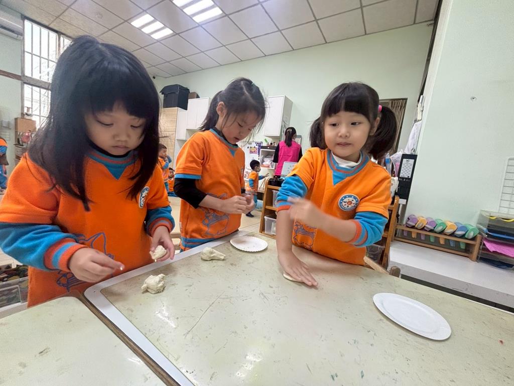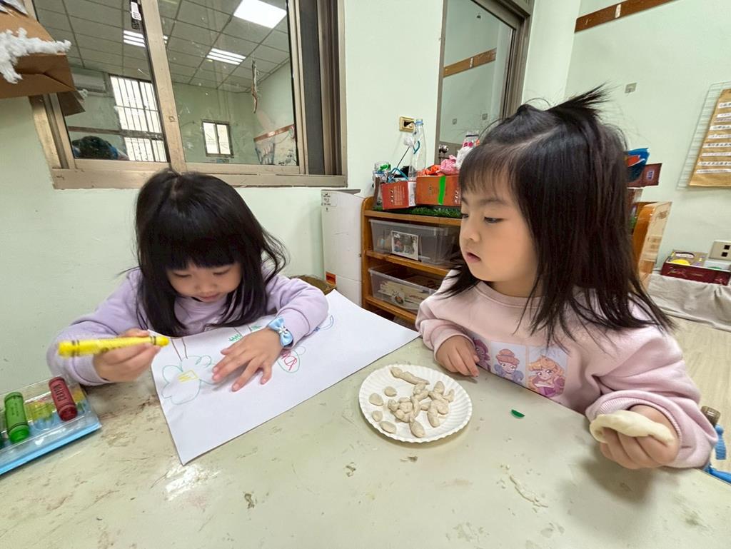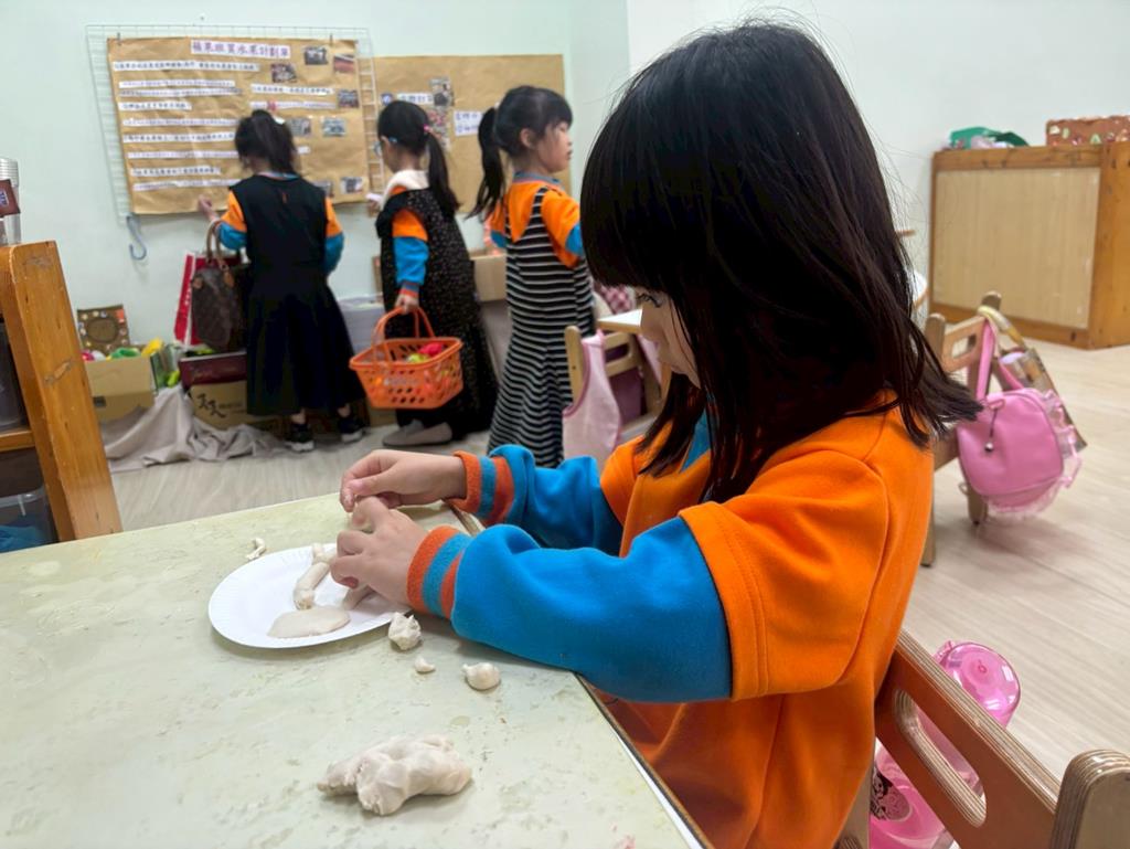 相簿名稱: 美勞區捏水果造型的麵糰、製作客人排隊的標示