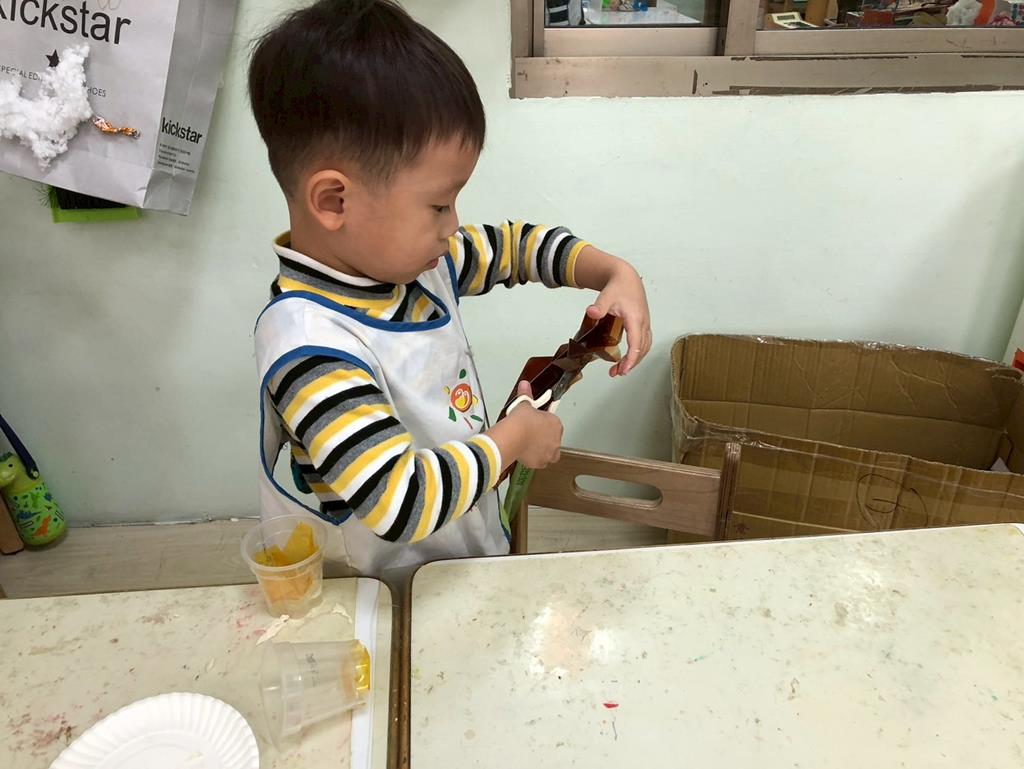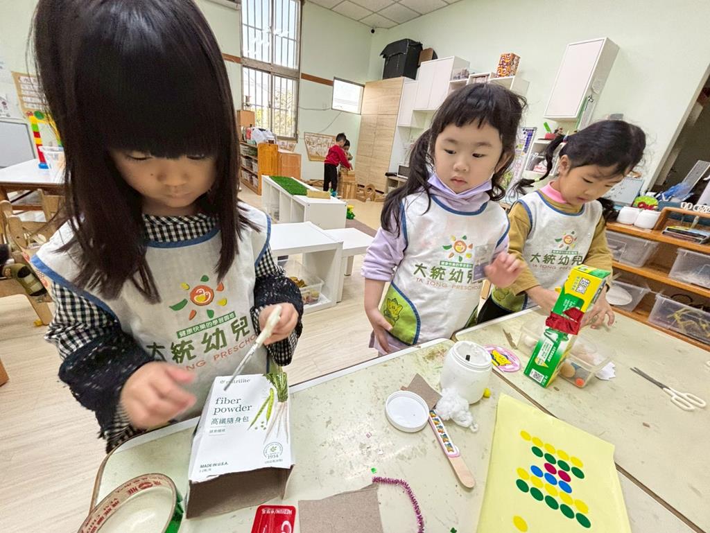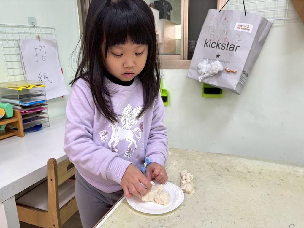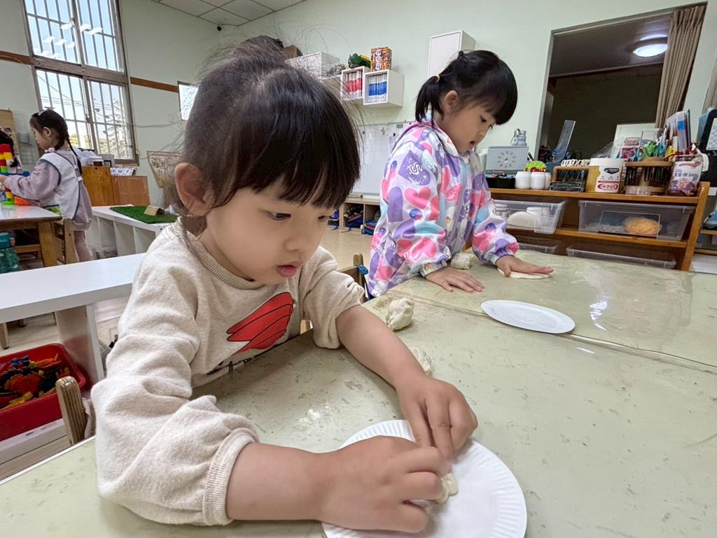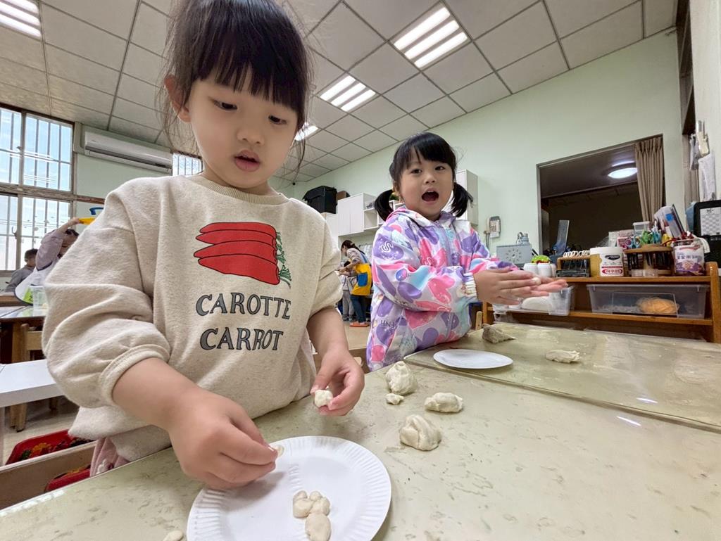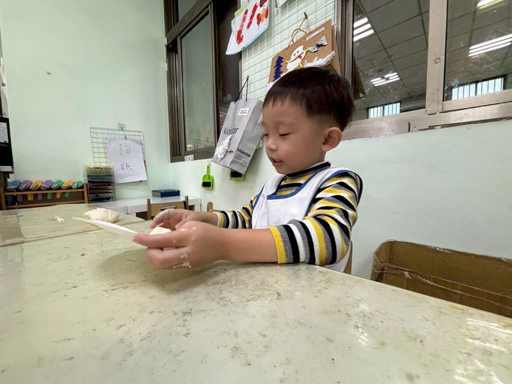 相簿名稱: 美勞區捏水果造型的麵糰、製作客人排隊的標示