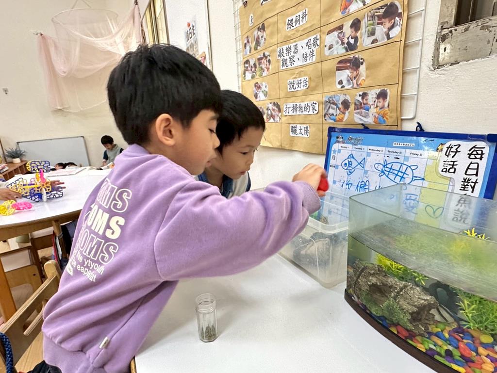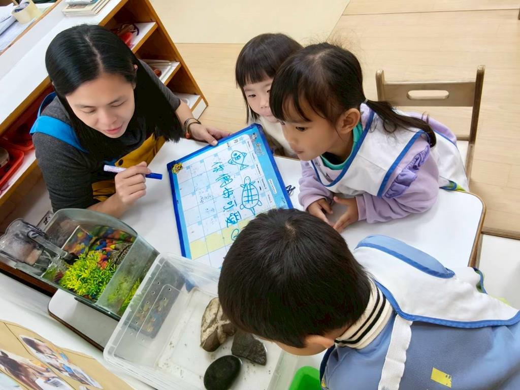 相簿名稱: 科學區-照顧小動物、天秤測量、浮沉實驗、看有關魚的書籍
