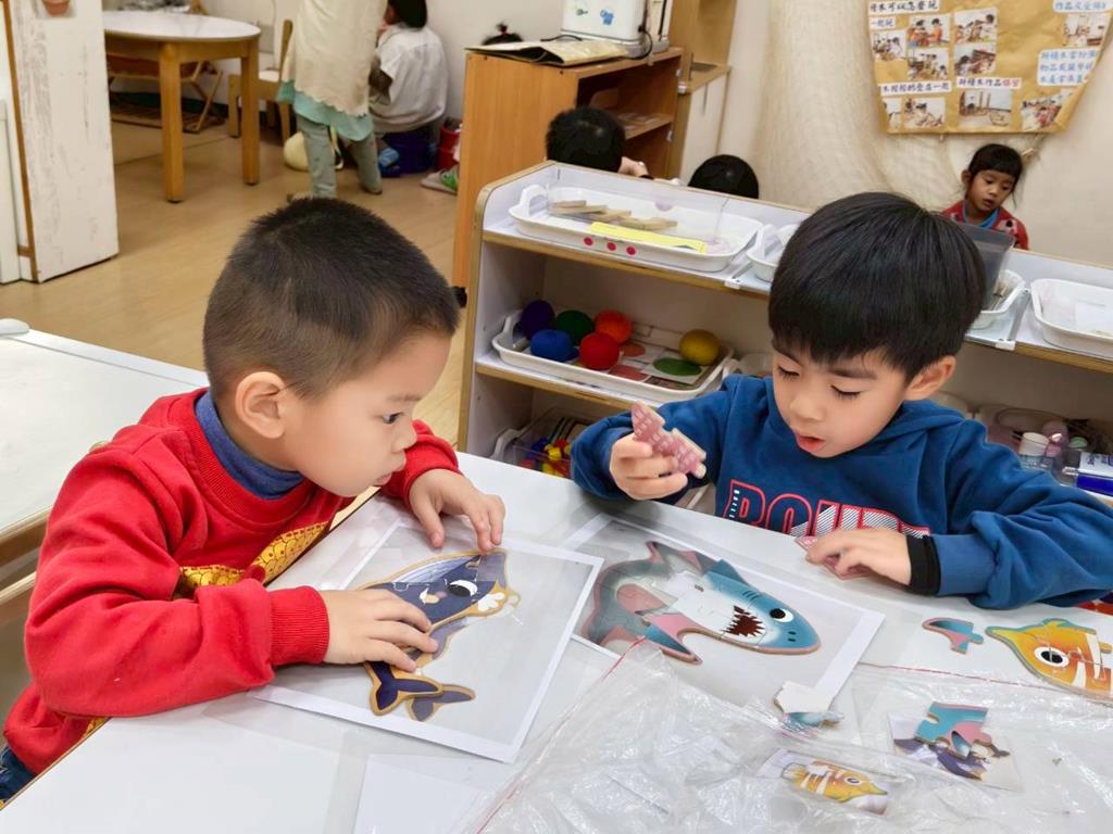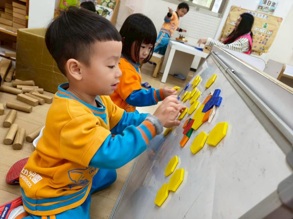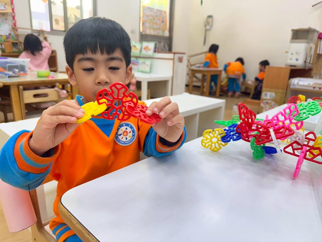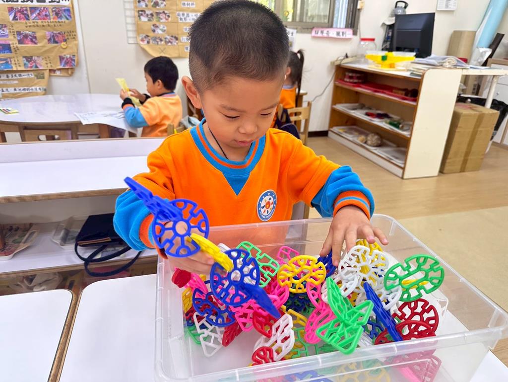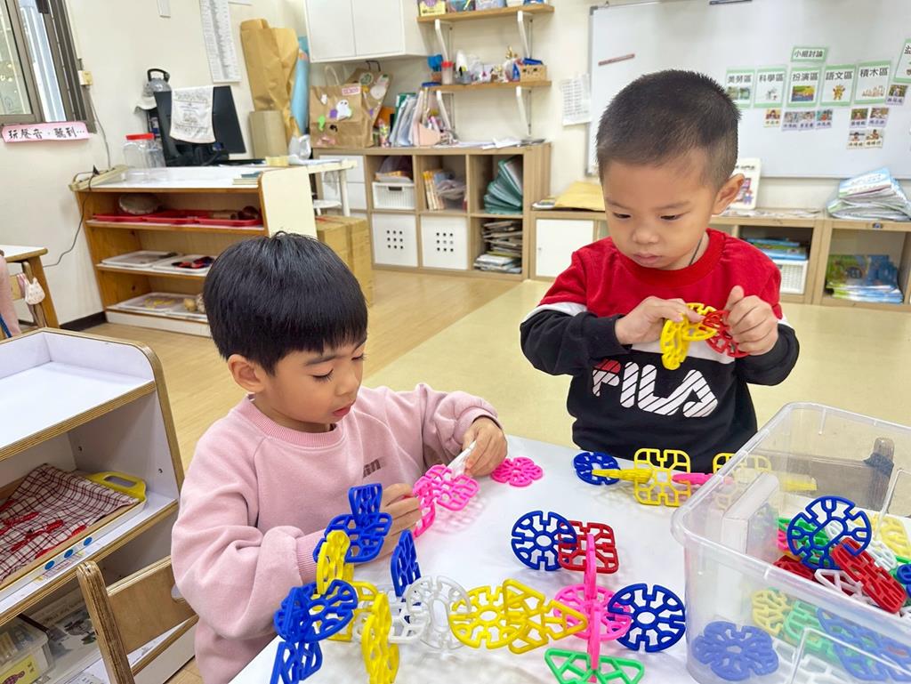 相簿名稱: 組合建構區-雪花片創作、疊杯、六形六色;數學區-拼圖、串珠