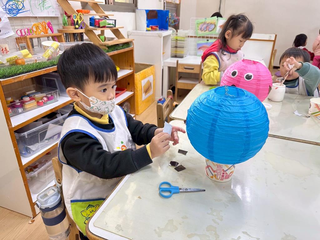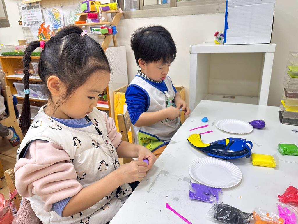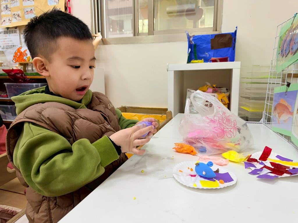 相簿名稱: 美勞區-魚與兔子製作、捏魚、創作燈籠魚、製作新年作品