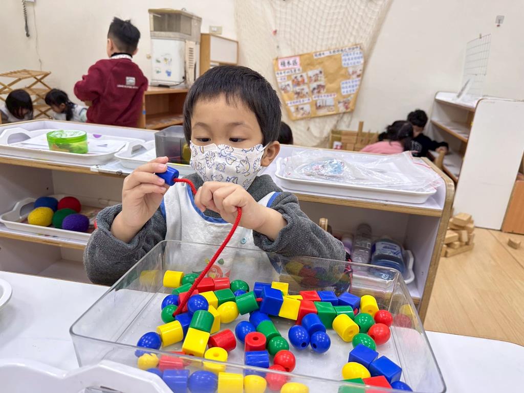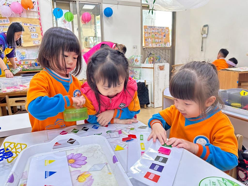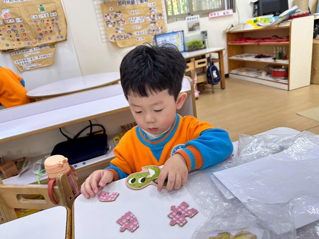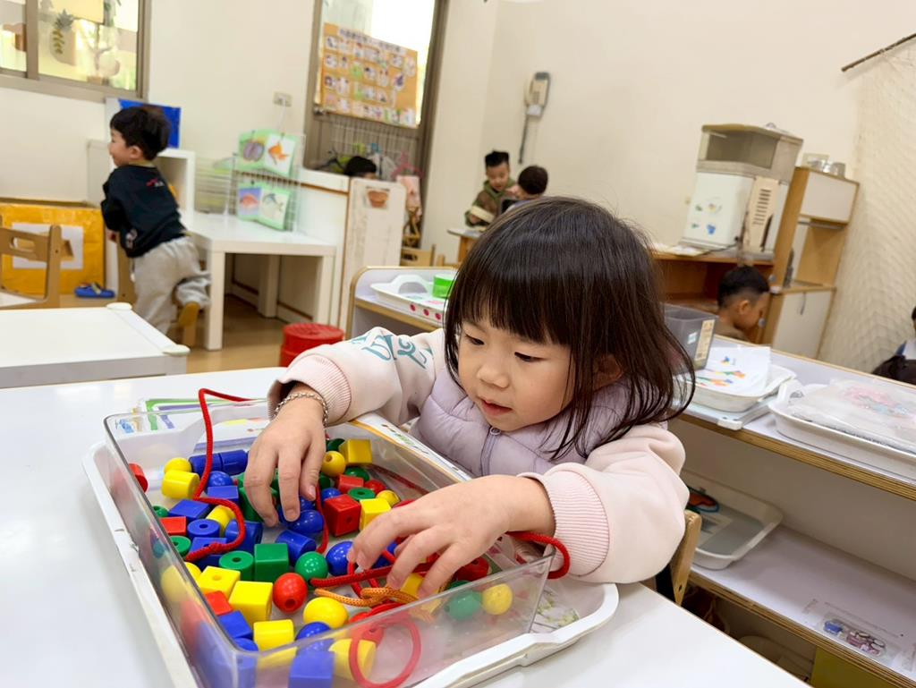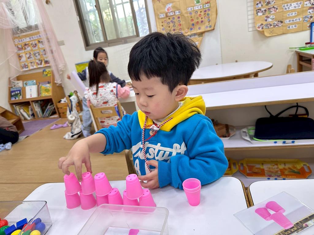 相簿名稱: 益智區-疊杯子、拼魚的拼圖、串珠、大雪花片、顏色和圖形配對