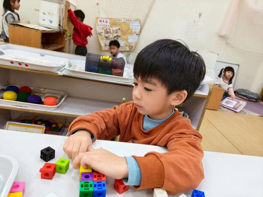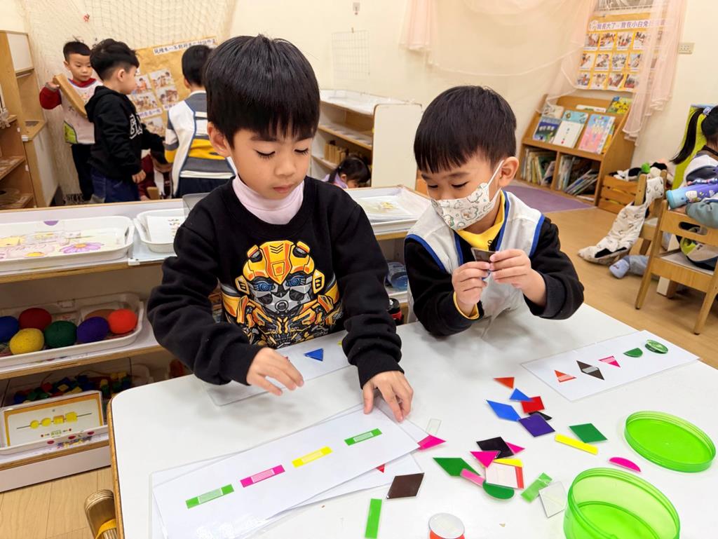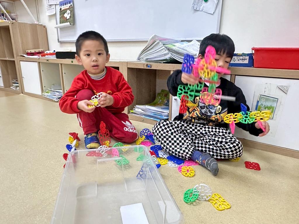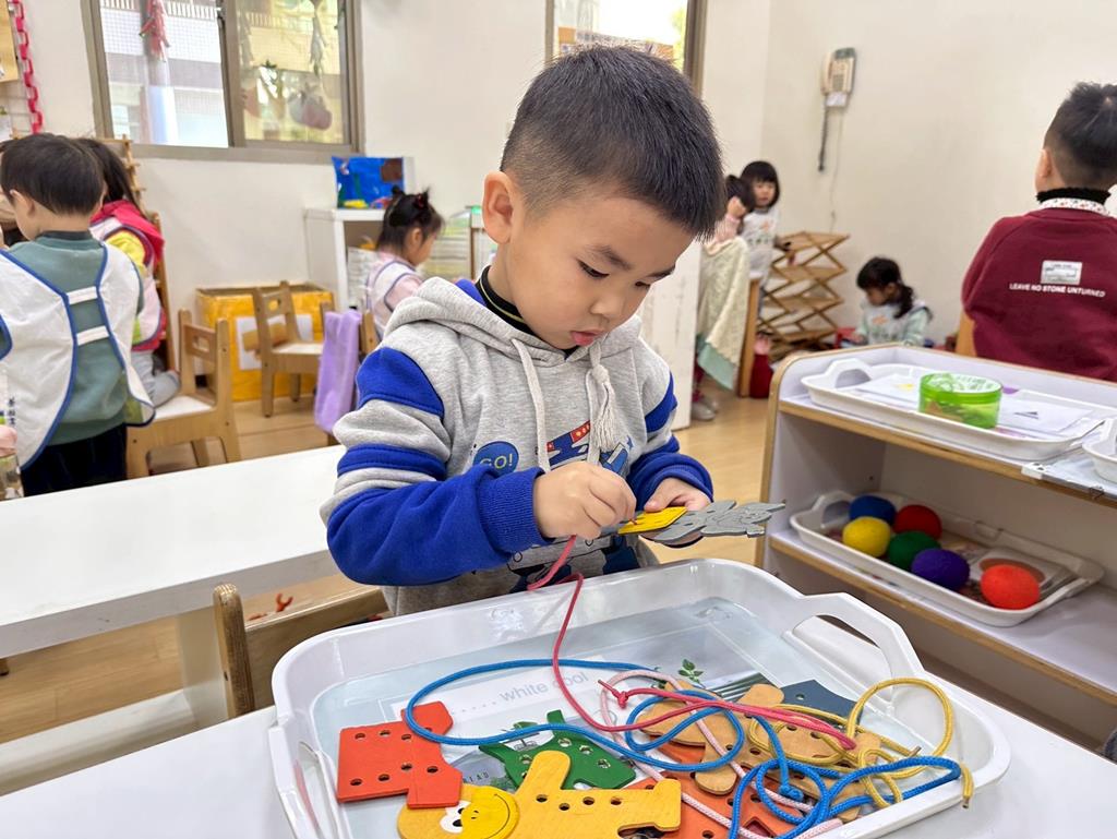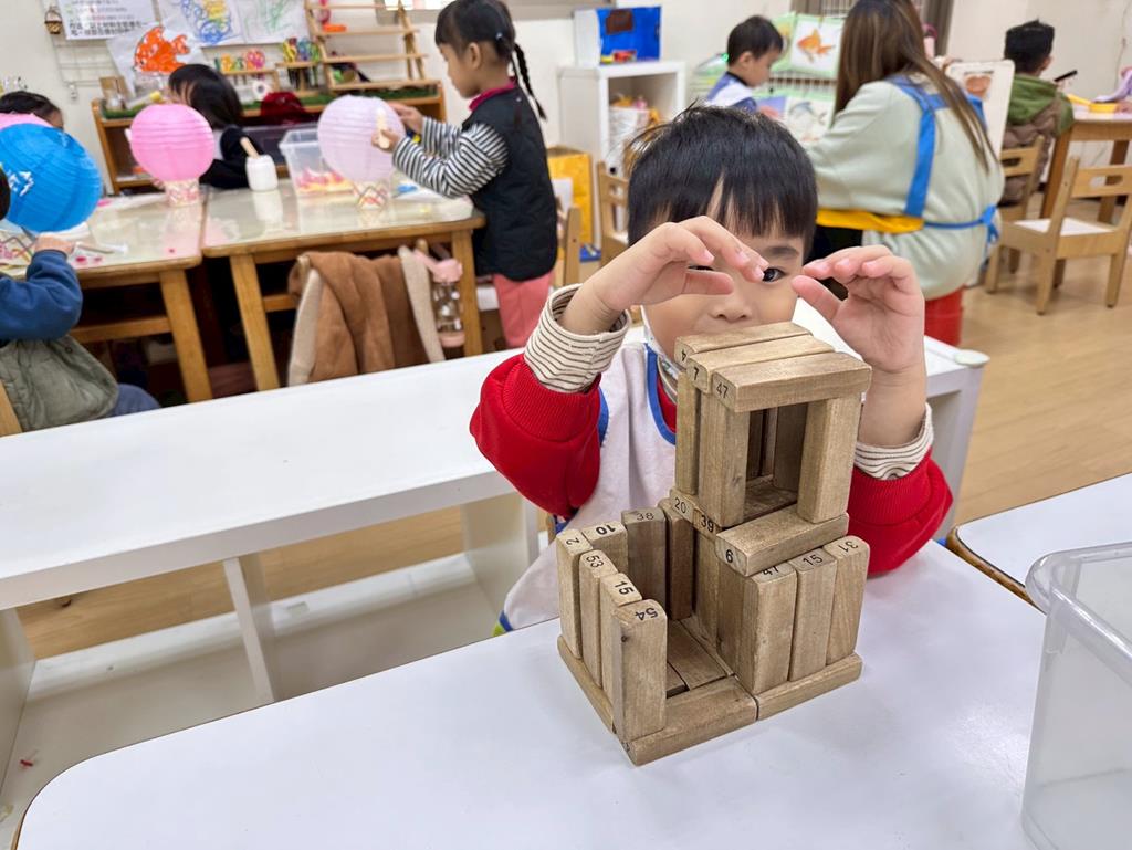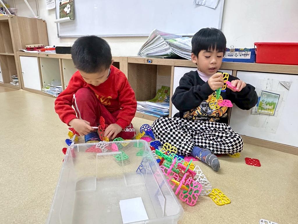 相簿名稱: 益智區-疊杯子、拼魚的拼圖、串珠、大雪花片、顏色和圖形配對
