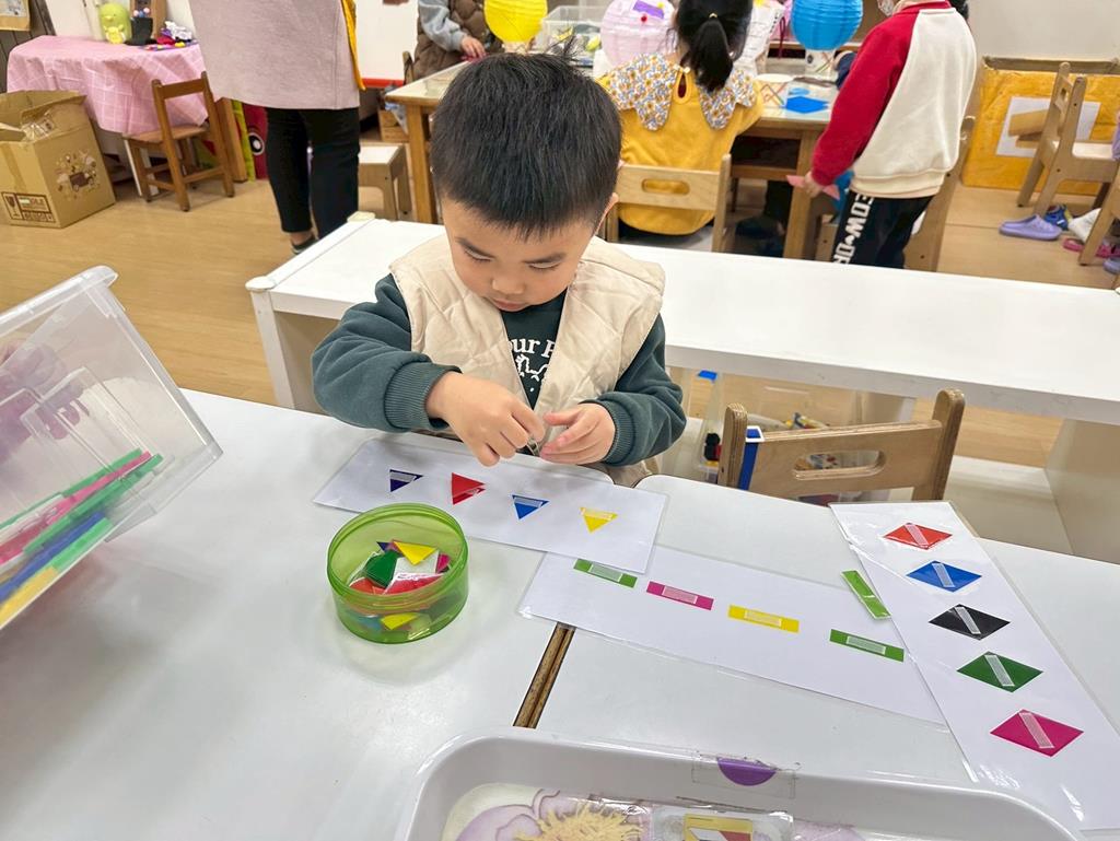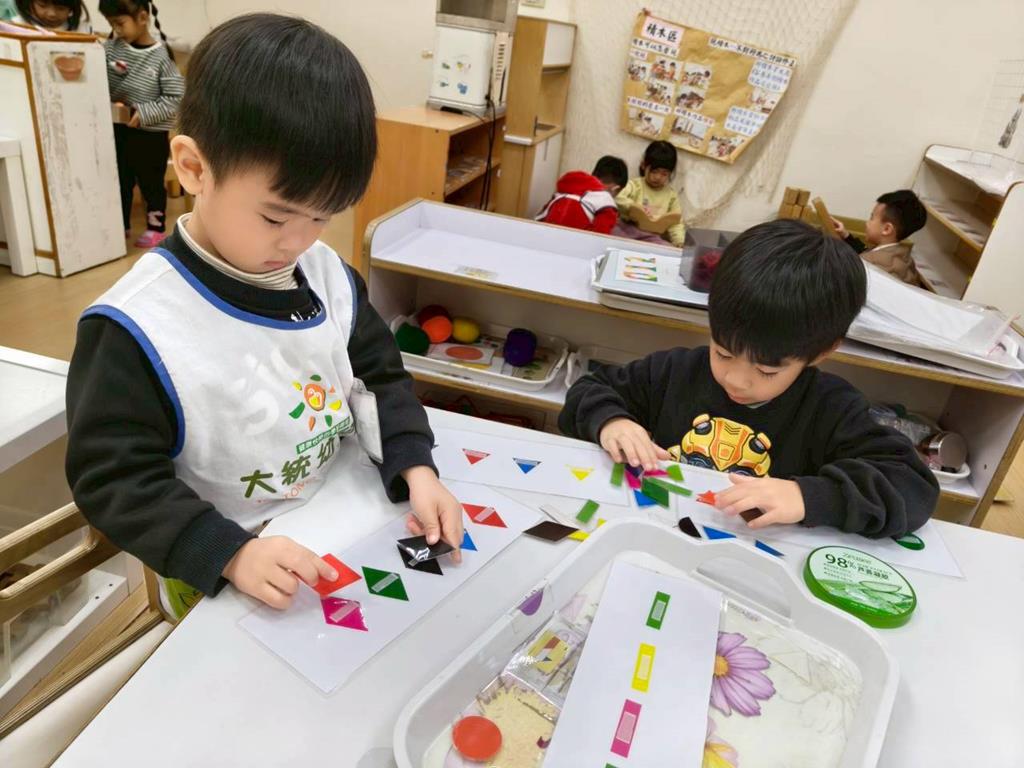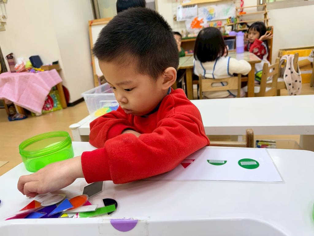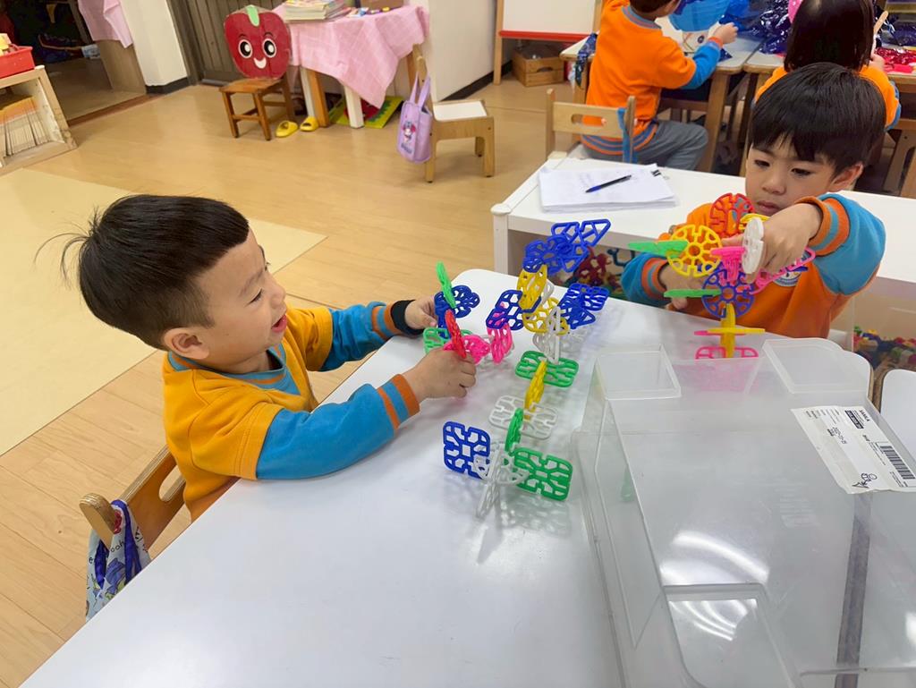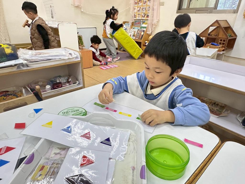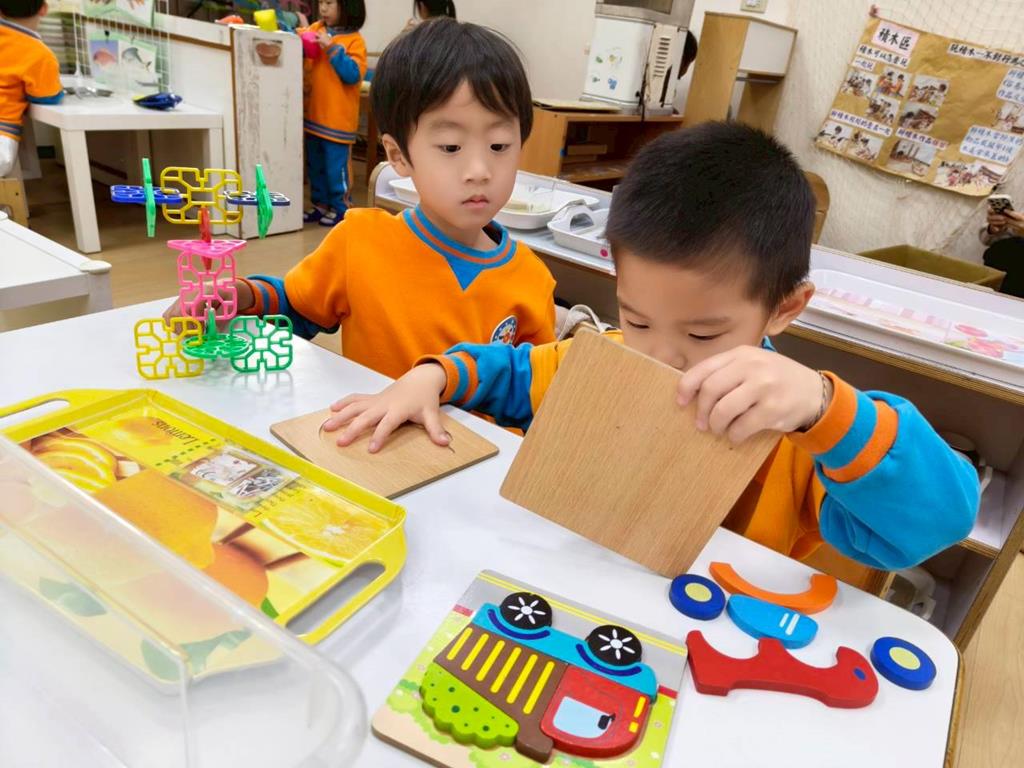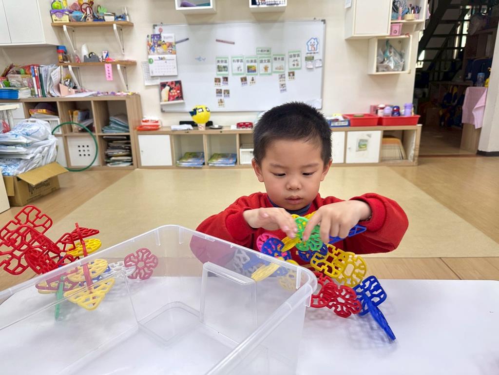 相簿名稱: 組合建構區-大雪花片創作、疊杯組合、小積木組合;數學區-形狀、顏色配對、拼圖