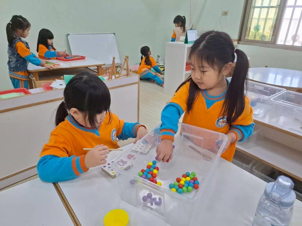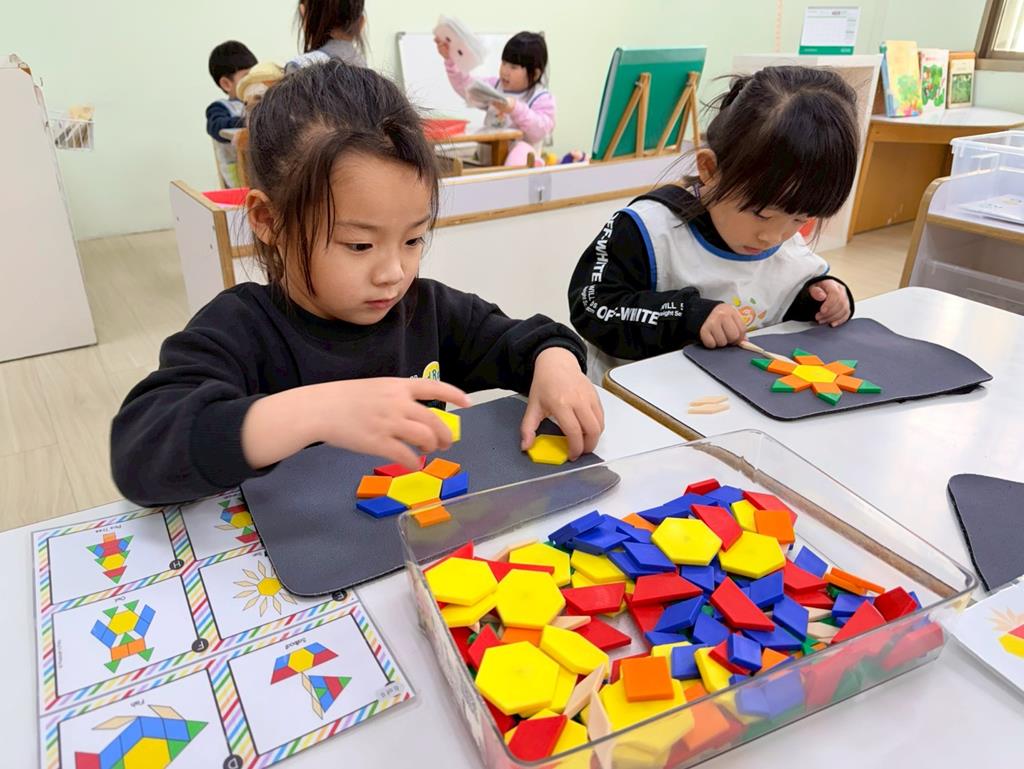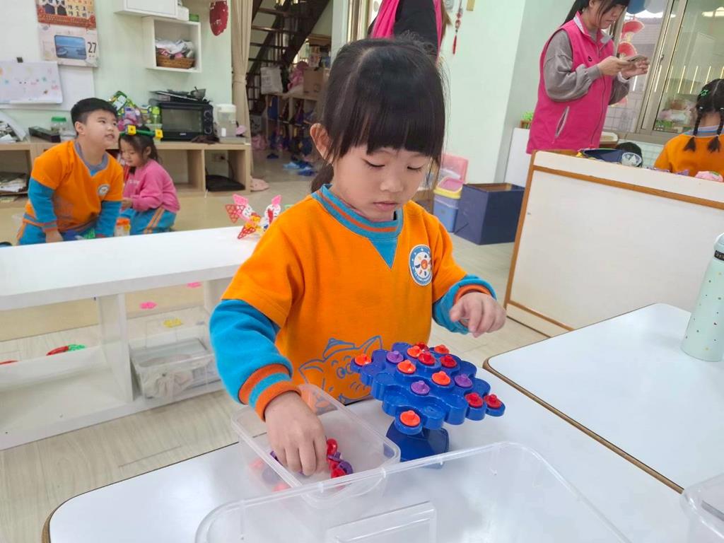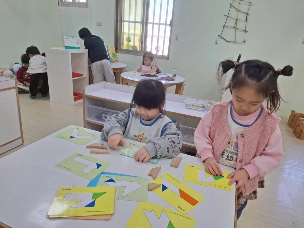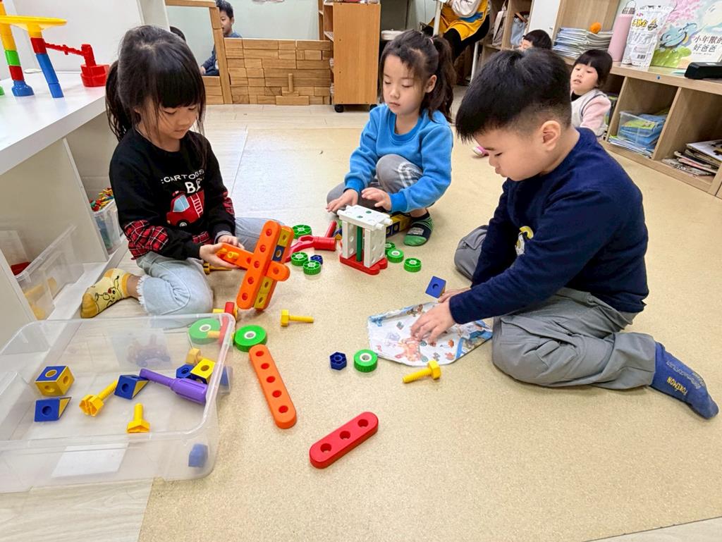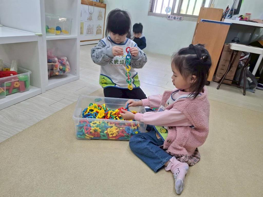 相簿名稱: 組合建構-小小工程師組.幾何鍊條扣環積木;數學區-六形六色.七巧板
