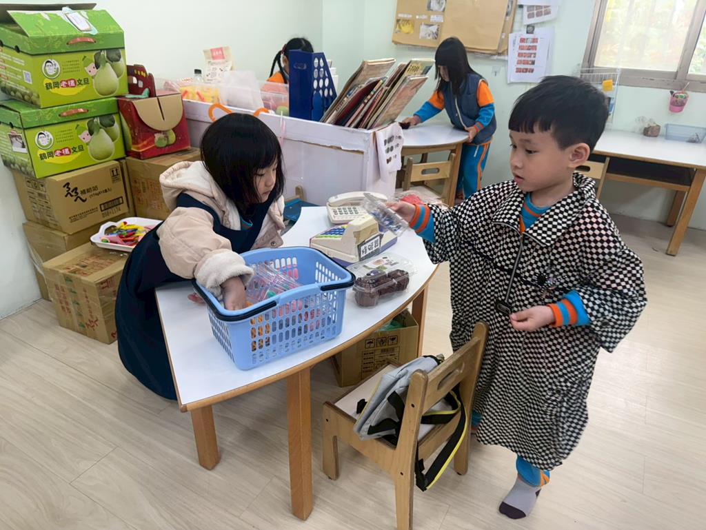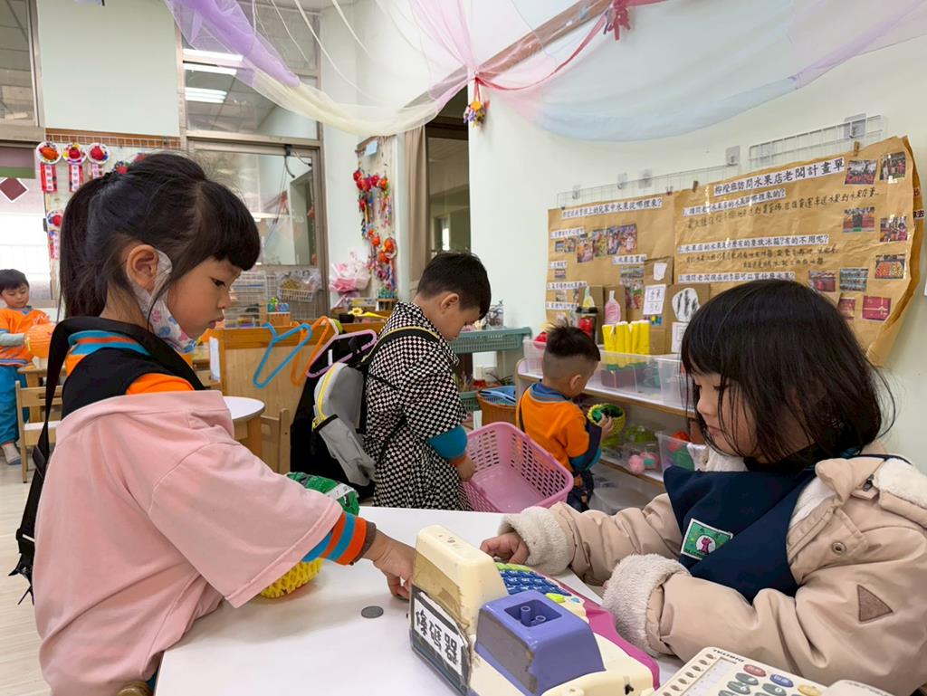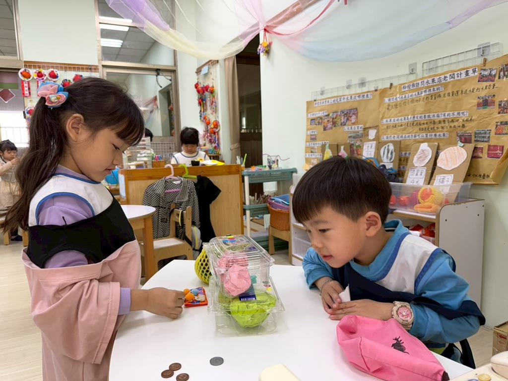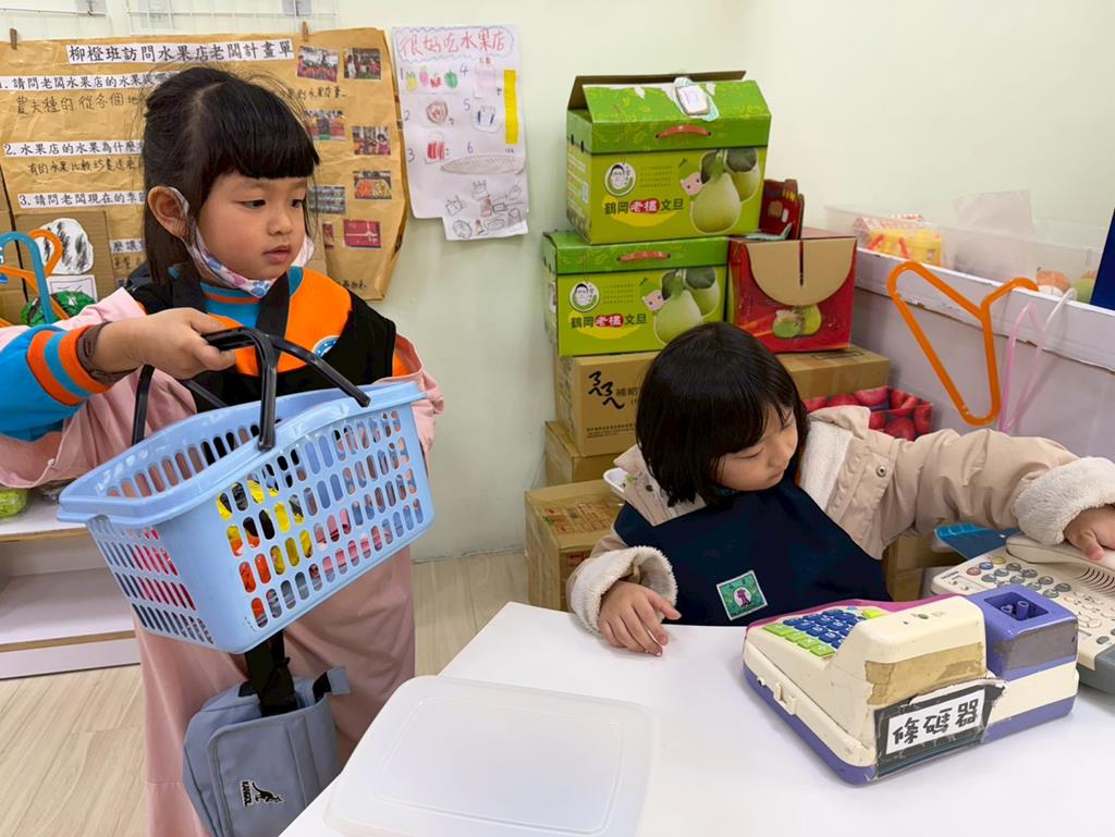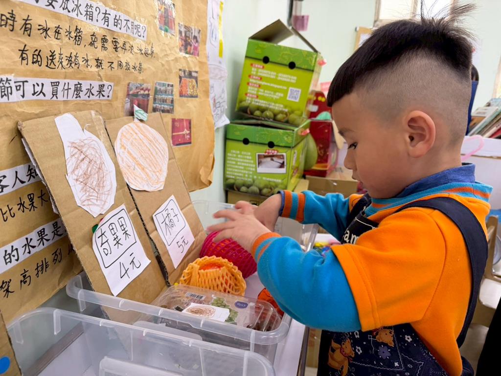 相簿名稱: 扮演區-水果店迎接客人來買水果,客人到主人家拜訪時送禮的表現;語文區-水果蹲,我會說練習說故事