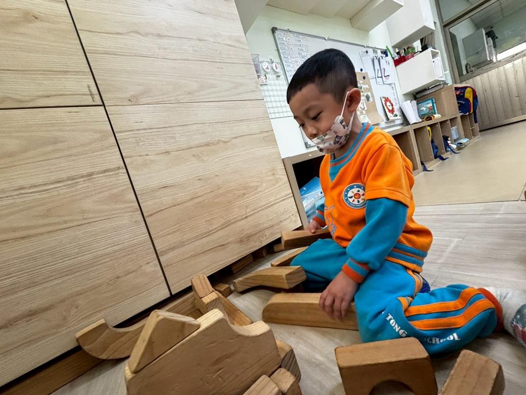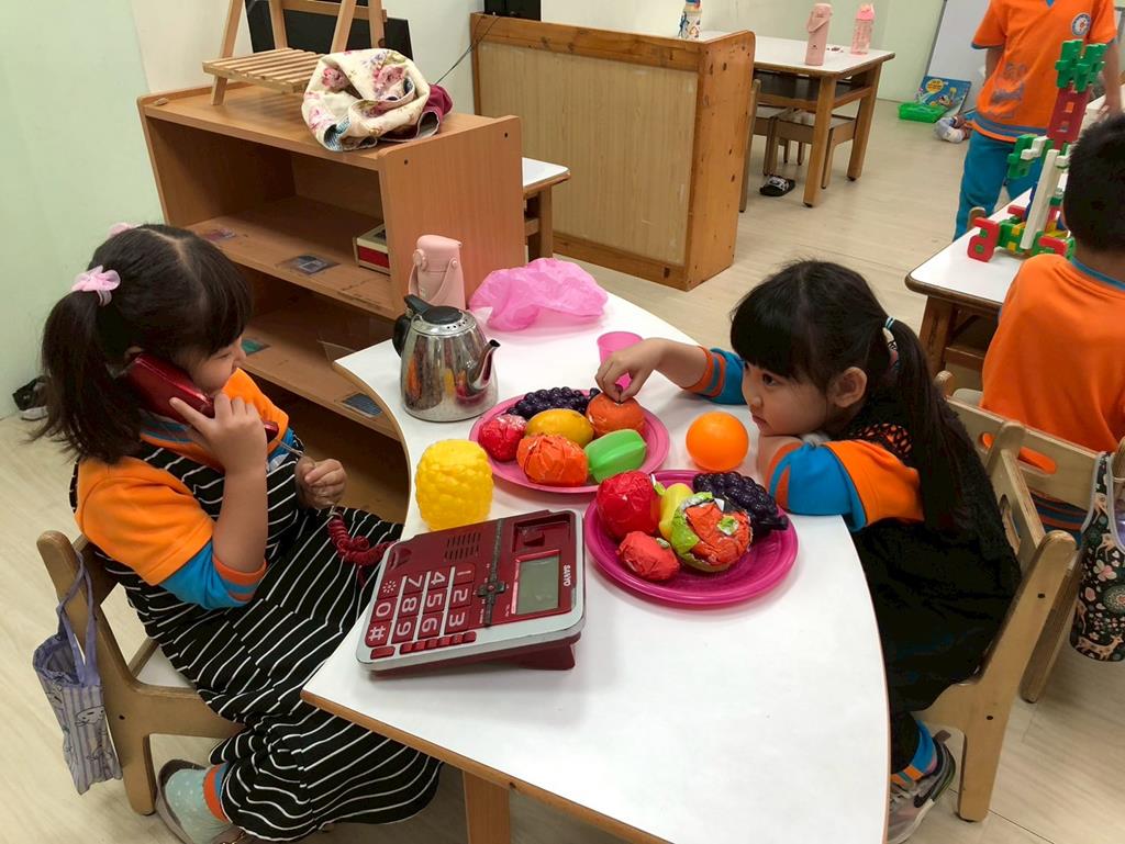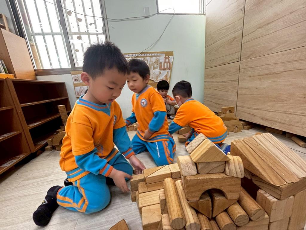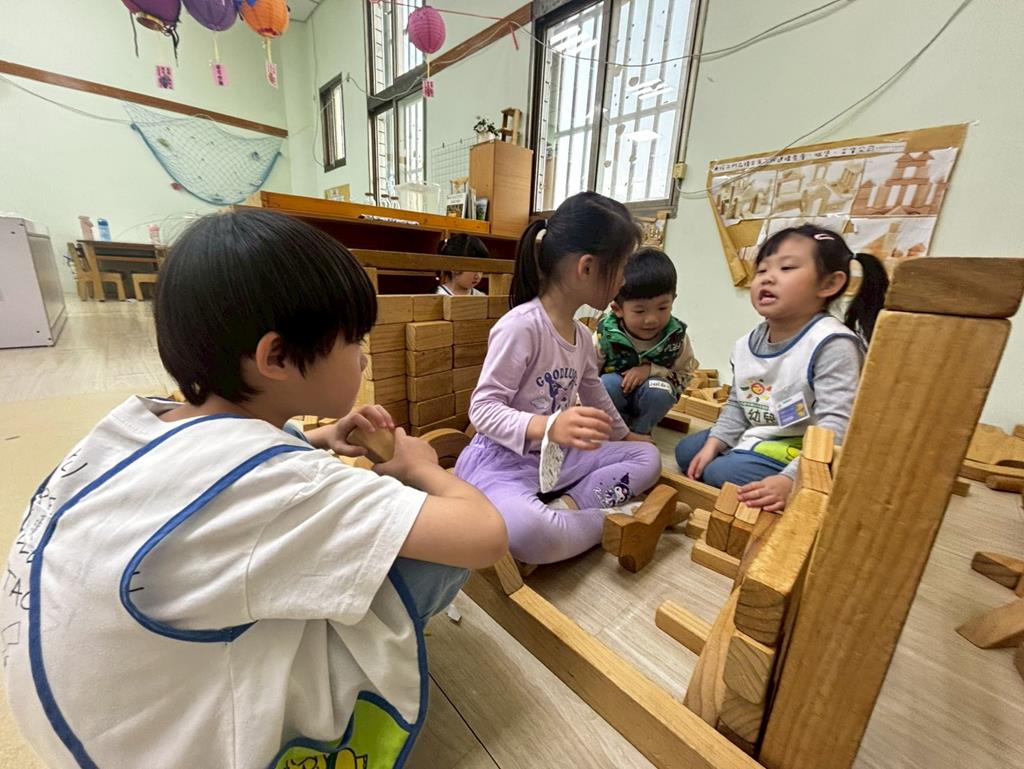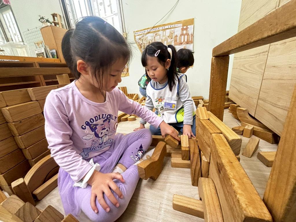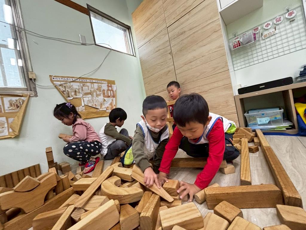 相簿名稱: 扮演區邀請客人來家裡吃水果過年、佈置貼春聯;積木區建構過年相關廟宇