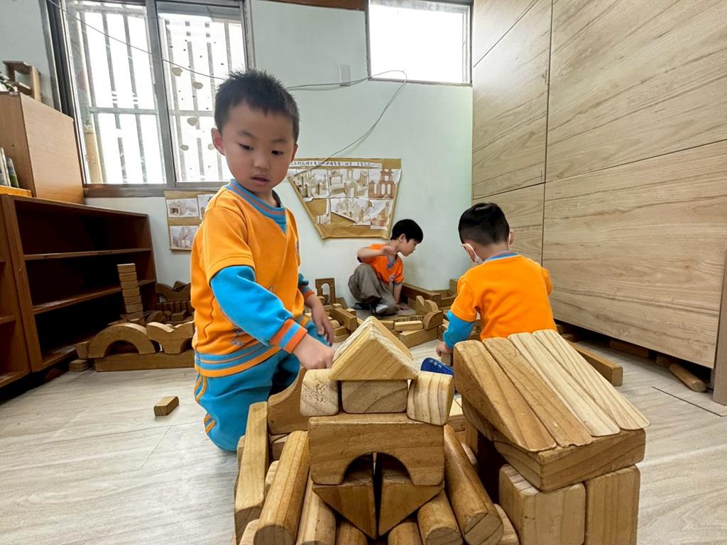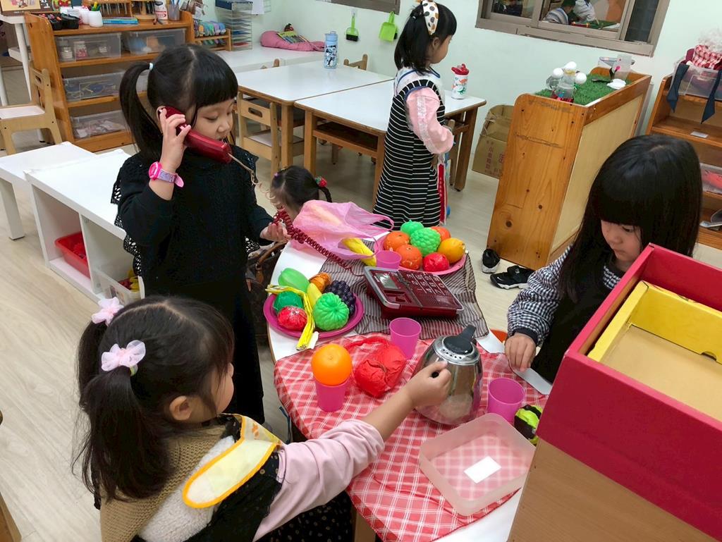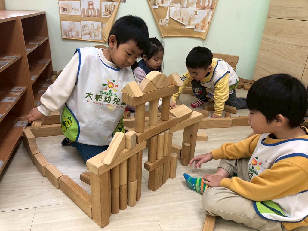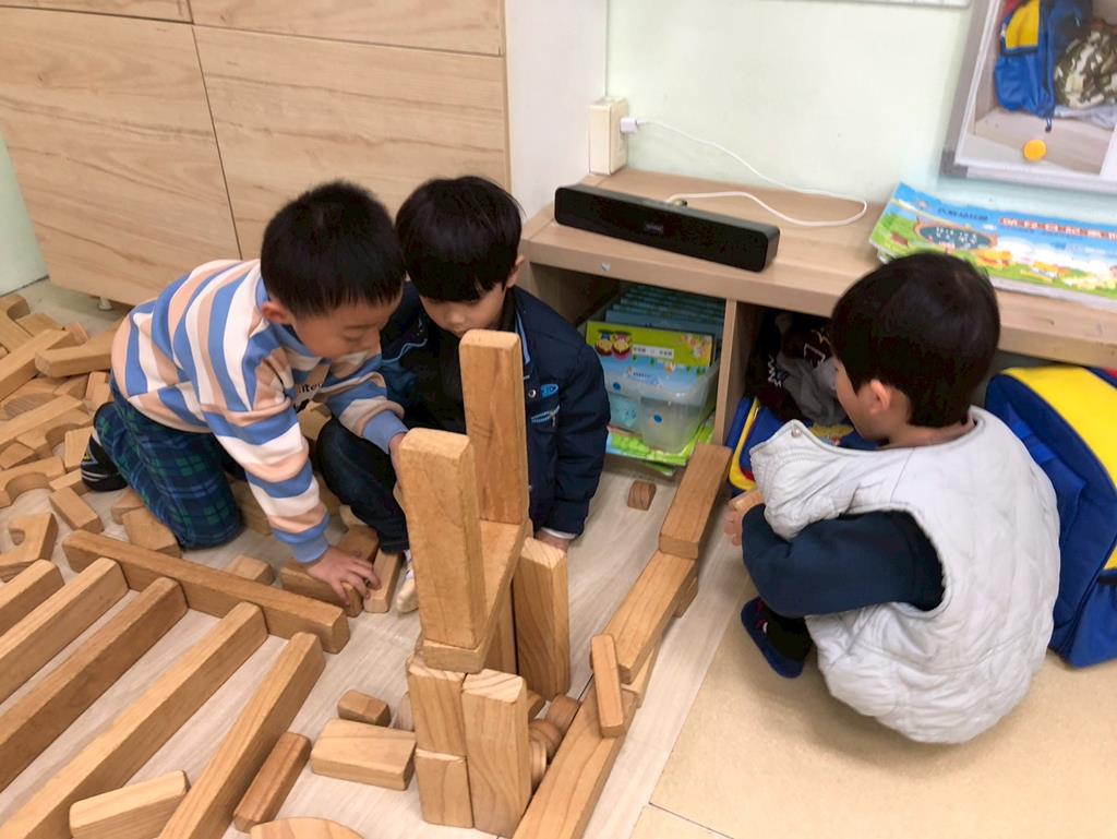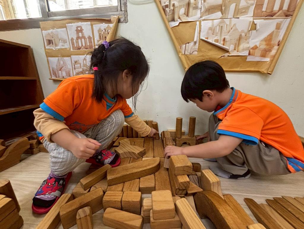 相簿名稱: 扮演區邀請客人來家裡吃水果過年、佈置貼春聯;積木區建構過年相關廟宇