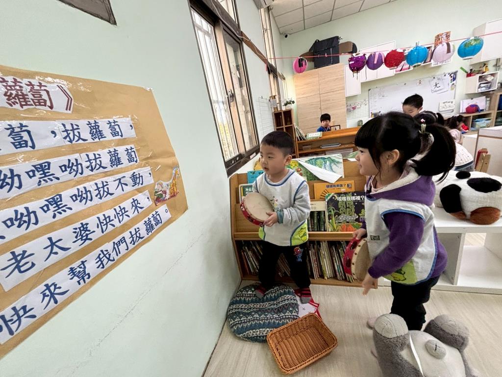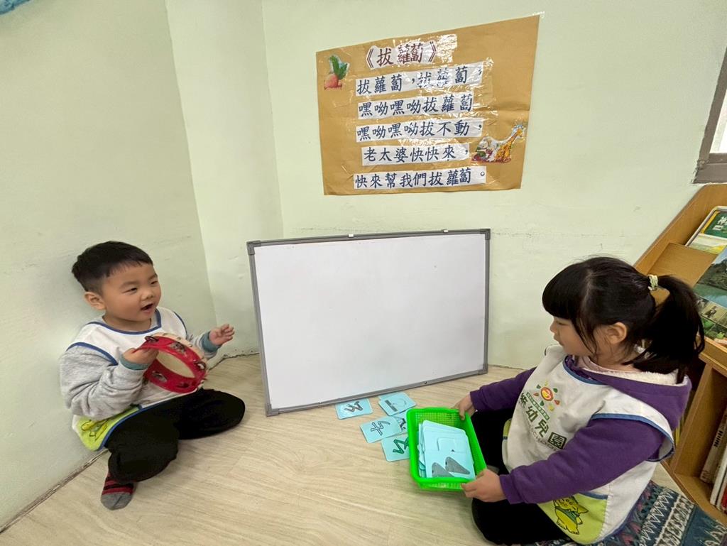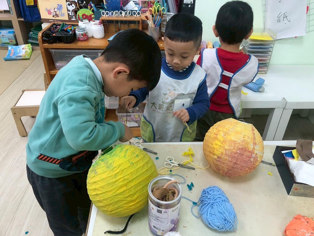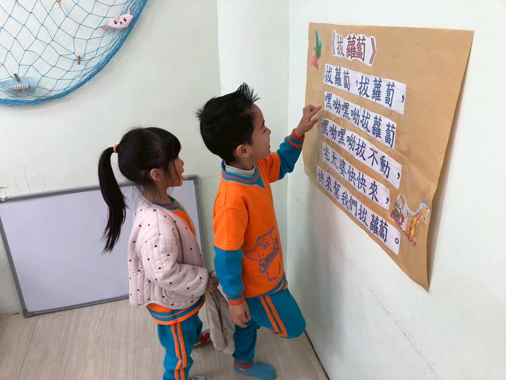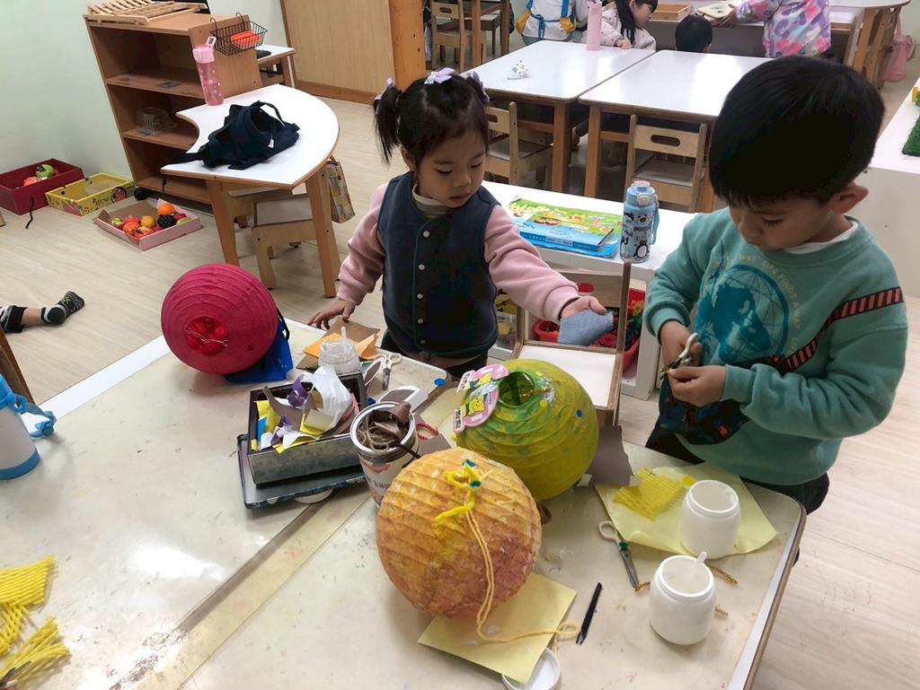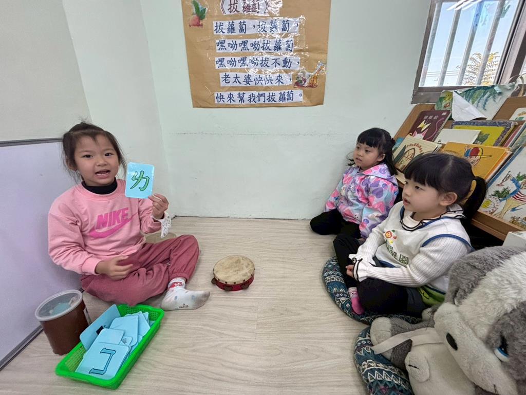 相簿名稱: 美勞區製作燈籠及廢物工創作;語文區唸唱拔蘿蔔兒歌、閱讀繪本