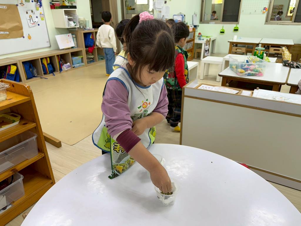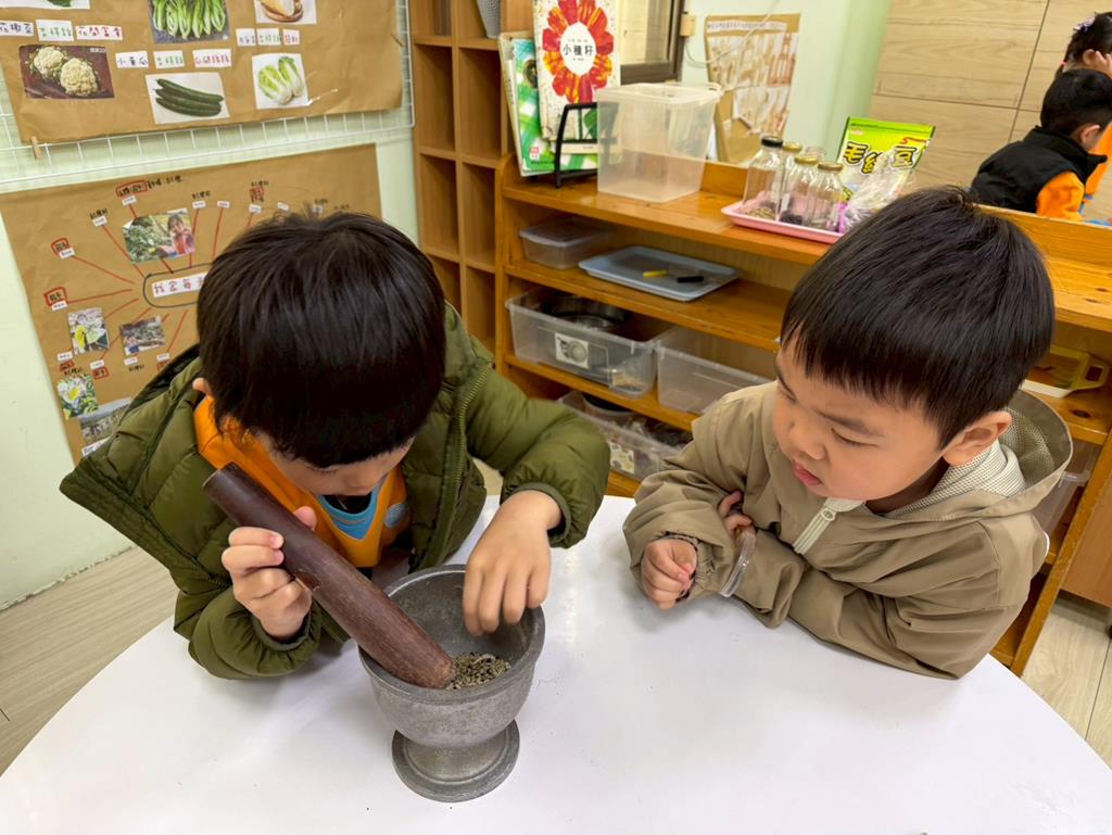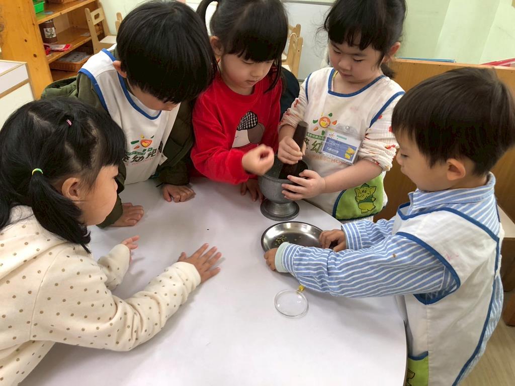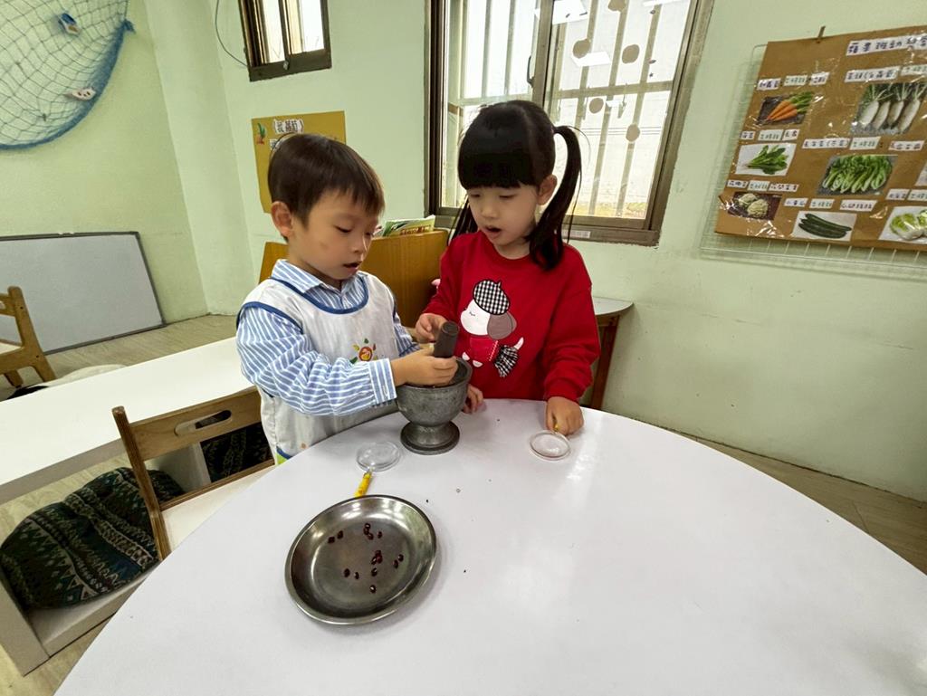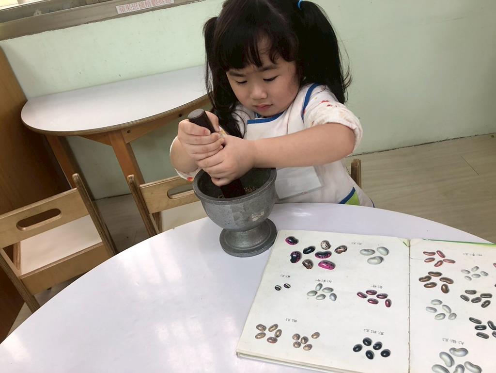 相簿名稱: 科學區閱讀蔬菜繪本、觀察不同的豆子、研磨豆子實驗、種綠豆
