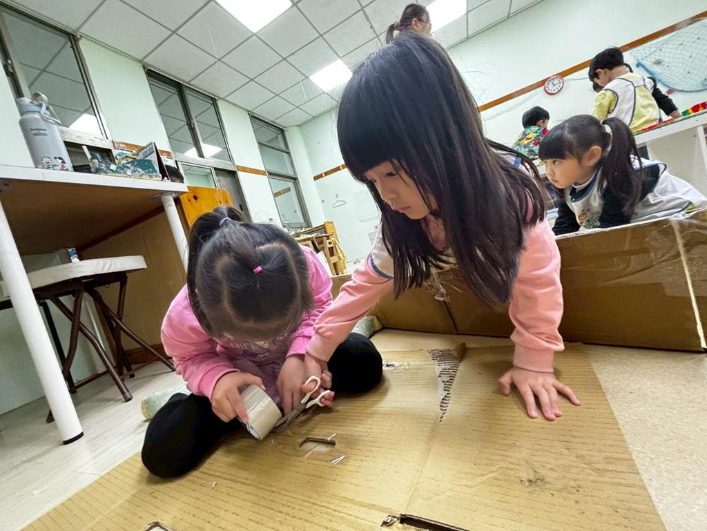 相簿名稱: 美勞區廢物工創作、形狀剪紙練習、製作扮演區浴缸道具