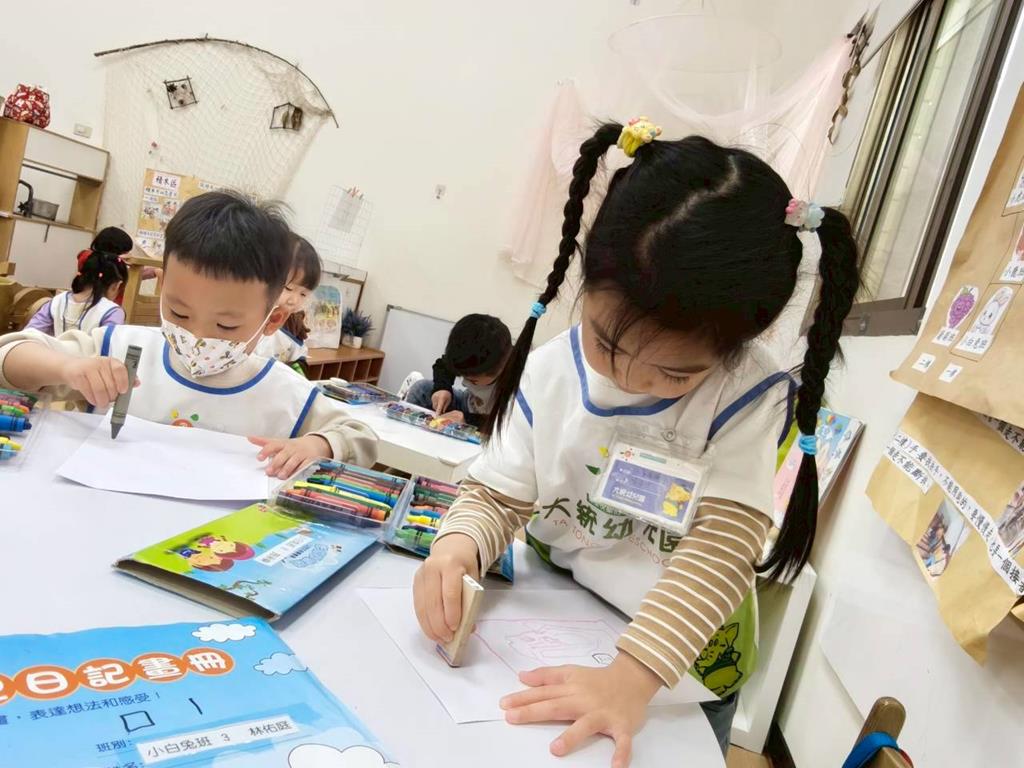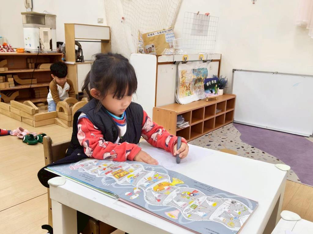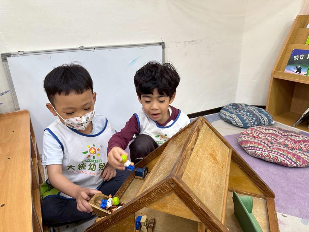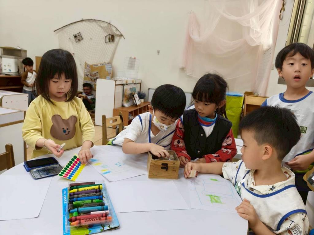 相簿名稱: 語文區-仿畫100層樓的家、偶的扮演、畫社區景象、符號卡片