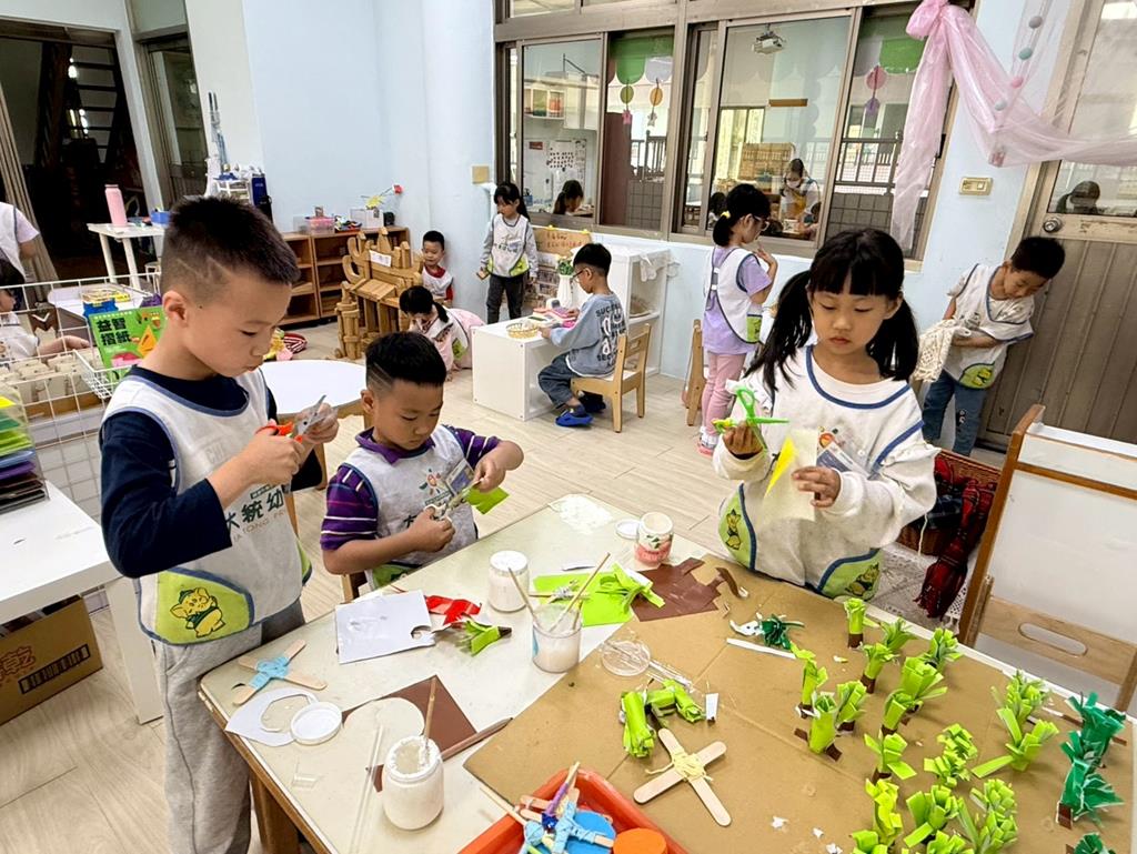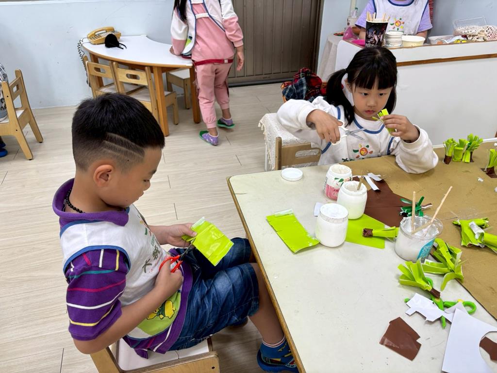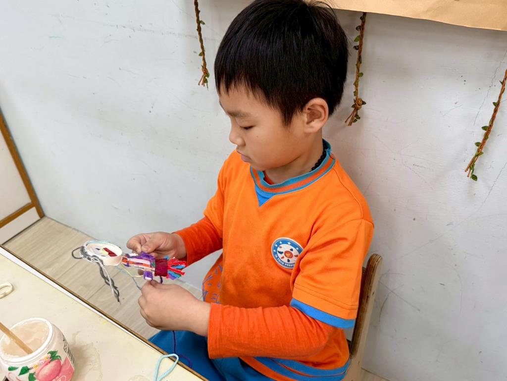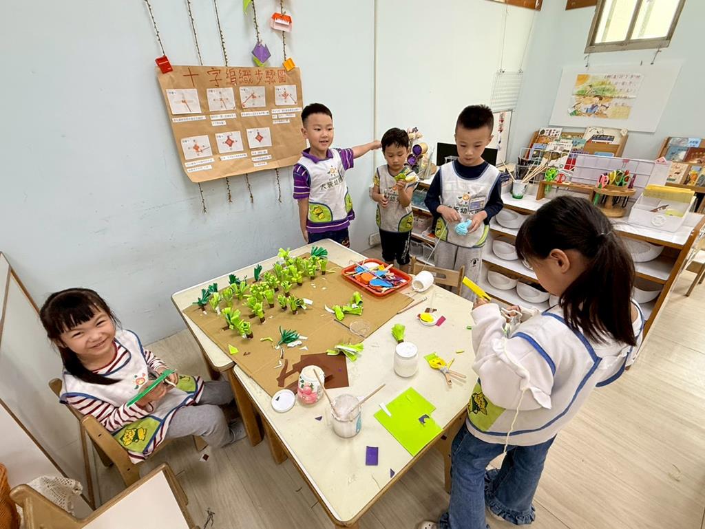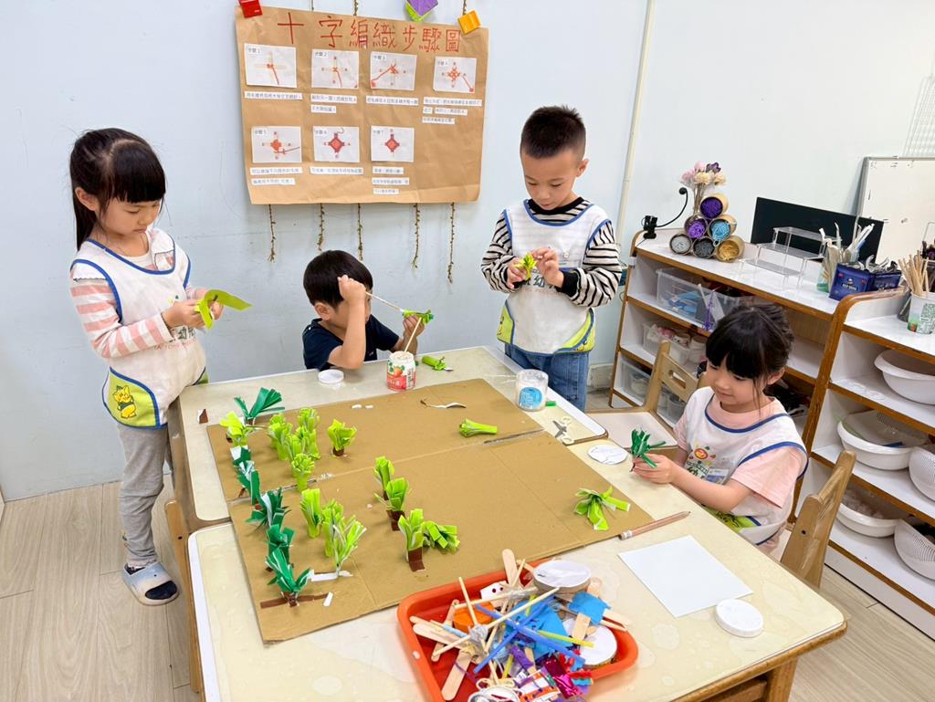 相簿名稱: 利用冰棒棍筷子製作稻草人,並用十字編織法纏繞衣服;製作秧苗與稻田