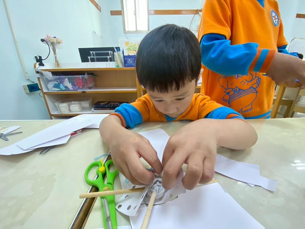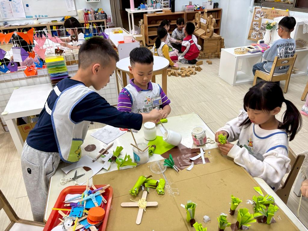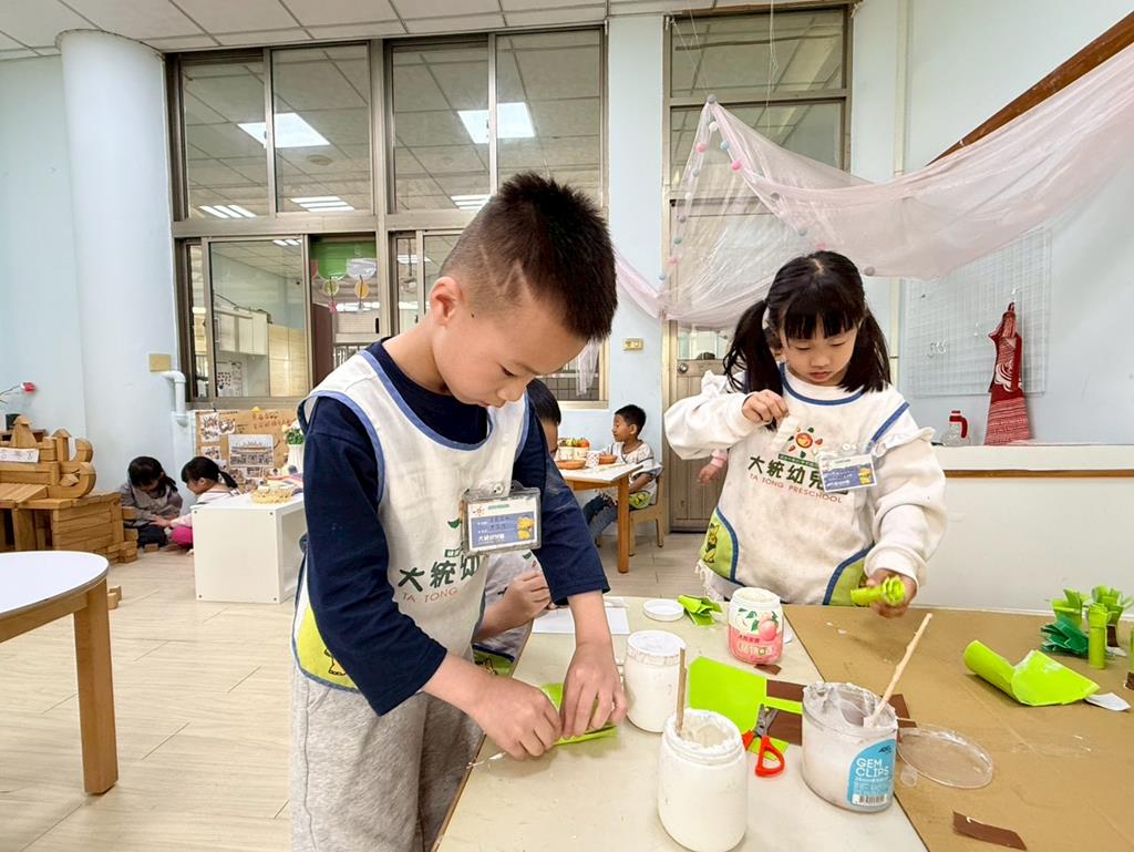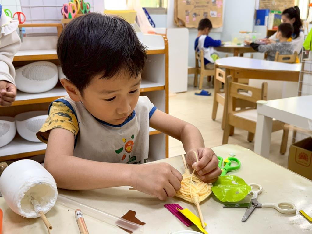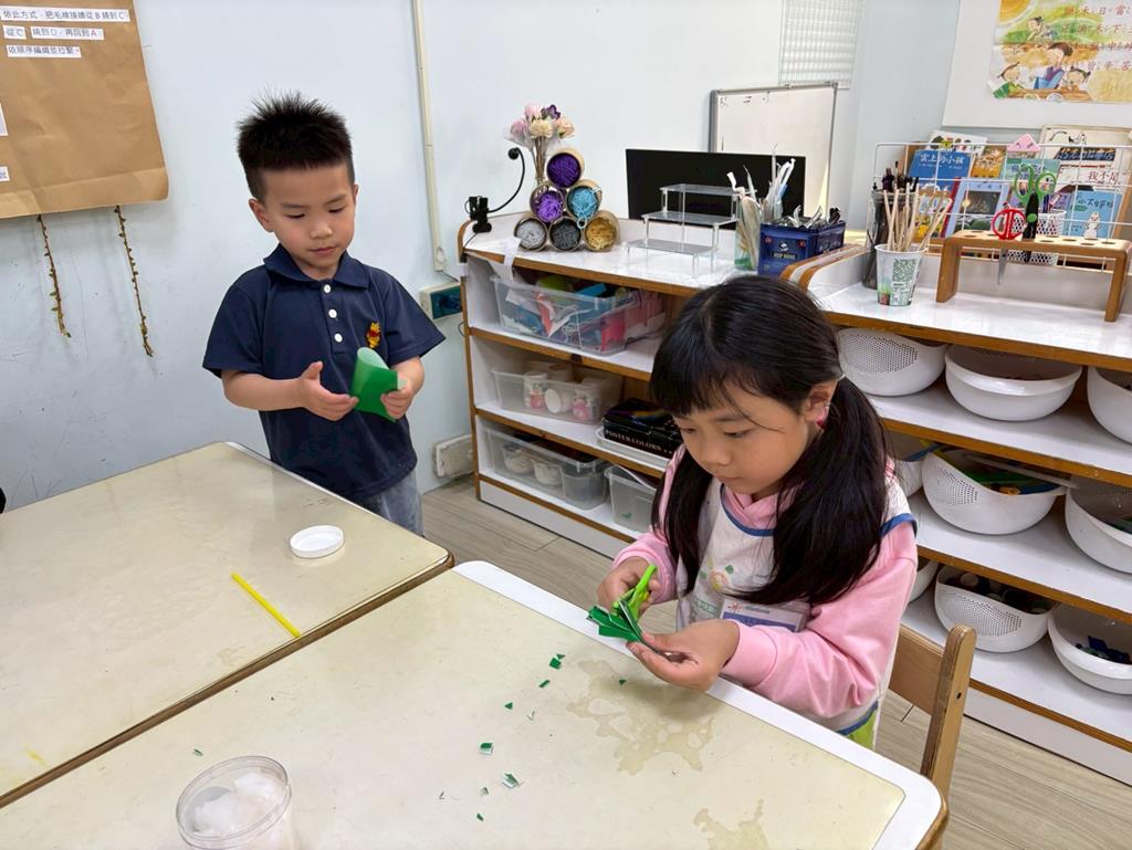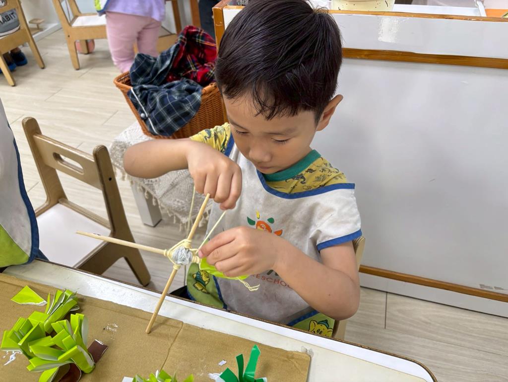 相簿名稱: 利用冰棒棍筷子製作稻草人,並用十字編織法纏繞衣服;製作秧苗與稻田