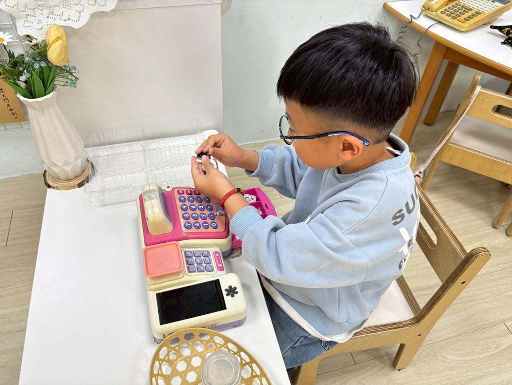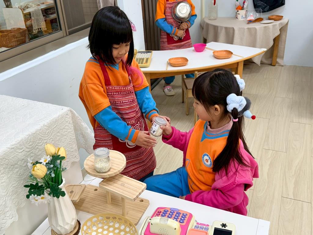 相簿名稱: 扮演家人買賣米遊戲;製用紙板作錢幣